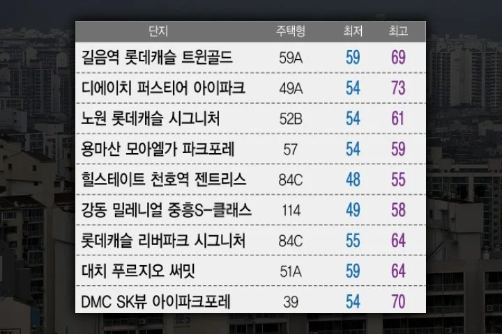 실제로 지난 1월 분양한 강남구 ‘개포프레지던스자이’ 전용 84㎡의 최저 당첨 가점은 68점으로 가장 높았은 수치를 기록했으며, 4월 분양한 서초구 ‘르엘 신반포’는 67점, 양천구 ‘호반 서밋 목동’은 61점, 서대문구 ‘e 편한 세상 홍제 가든플라츠’는 60점을 각각 기록했다. 현실적으로 인기 단지에서는 64점으로도 당첨의 희비가 갈릴 만큼 커트라인이 높아진 것이다.