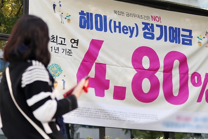 매주 시장금리를 반영하는 KB국민은행의 ‘KB STAR 정기예금’은 1년 만기 기준 연 5.01% 금리, NH농협은행의 ‘NH올원e예금’은 연 5.1% 금리를 지급한다. 하나은행도 한발 늦게 예금 금리를 5%로 올렸고, 신한은행은 “인상을 검토 중”이라고 밝혔다.