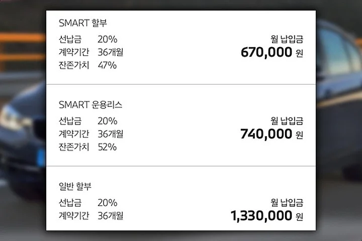 코로나19 사태로 인한 경제 위기로 어려운 상황 속에서 2030세대가 수입차에 관심을 보이는 이유는 따로 있다. 바로 다양한 할인과 할부 프로그램 때문이다. 요즘은 수입차를 구매할 때 차량 가격의 일부를 선납입하고 남은 금액을 할부로 돌려 납부하는 경우가 일반적이다. 극단적으로 60개월 풀할부로 구매하는 경우도 있다.