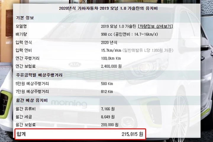 자동차는 관상용이 아니다. 샀으면 타야한다. 타는데는 기름이 든다. 그나마 디젤이라 저렴한 편이다. 월 1000km 운행에 공인연비 14.3km/L를 적용시 한달 유류비는 약 9만원으로 예상된다. 다만 주행환경, 운전자의 습관, 주유비 등락에 따라 해당 금액은 오차가 있음을 감안해야한다. 종합자산관리 앱 '뱅큐'는 직장인의 월 평균 주유비를 12만원으로 발표하기도 했다. 이에 따르면 월 지출액은 약 163만원~166만원으로 예상된다. 사회초년생의 평균 실수령금은 198만원이다.