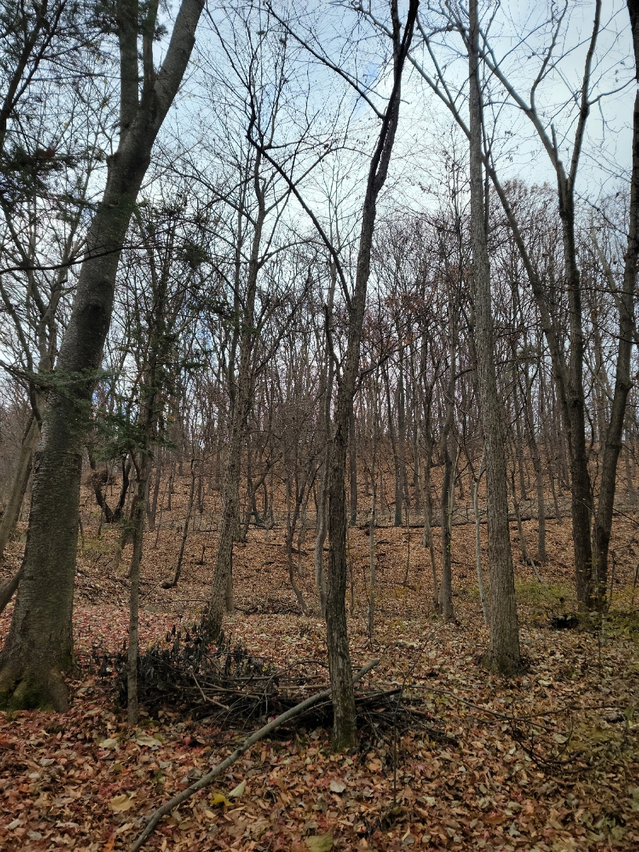 "이거 봐. 이거 진달래래. 누가 이걸 진달래라고 생각하겠어? 봄에는 정말 꽃이 예쁜데... 지금은 꽃이 없으니 진달래인 줄도 잘 모르겠다."