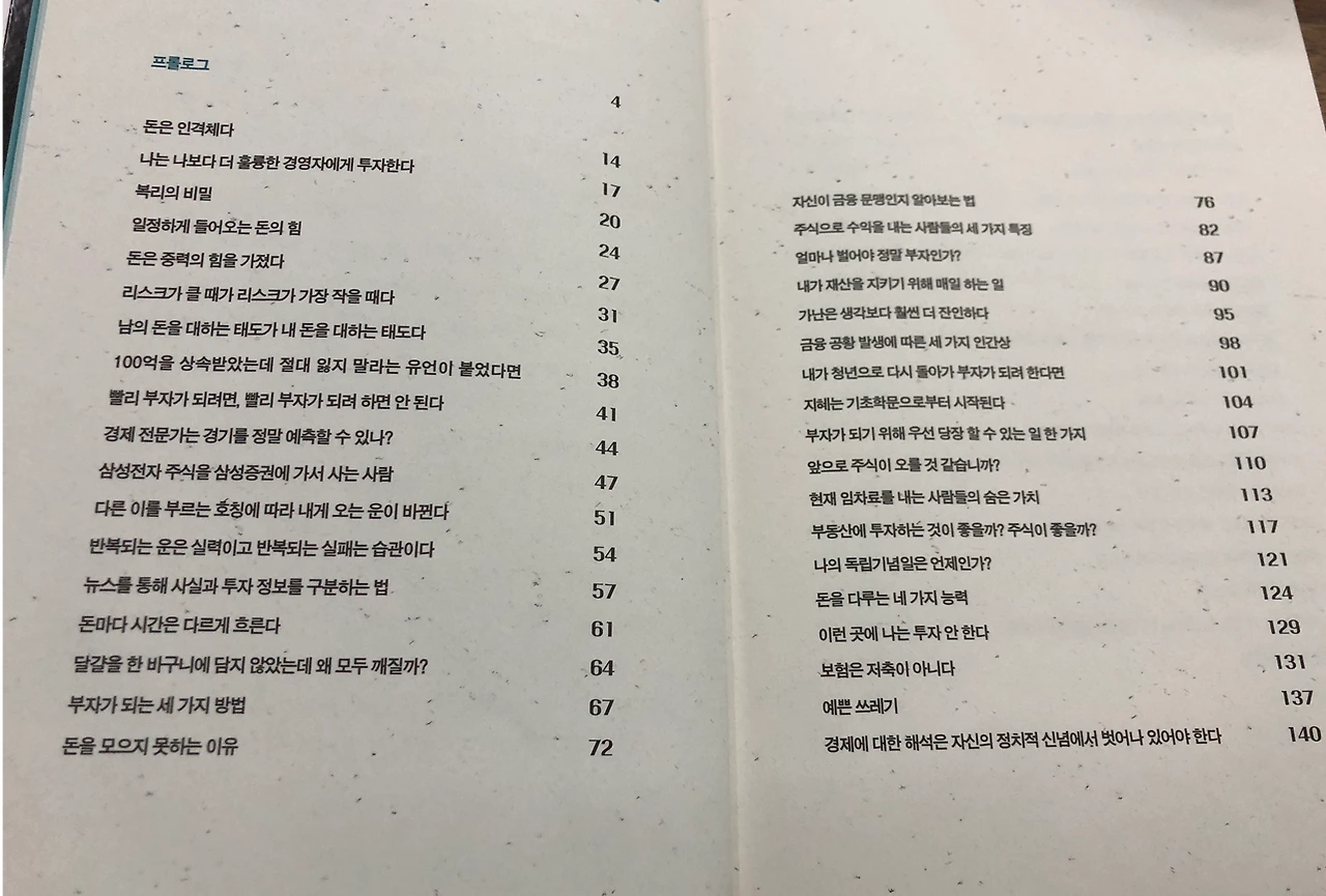 그동안 몇 권의 재테크 서적을 읽어도 피부에 와 닿지 않았다. 여느 책들과는 다르게 돈을 인격체로 대해야 한다는 관점을 비롯해 일상에서 실천할 수 있는 사소한 습관부터 말하고 있어서 매력적인 책이다. 이제 매일 일정한 시간에 자고 일정한 시간에 일어나 이부자리를 정리하고, 스트레칭을 하고, 물 한잔을 마시도록 하자.