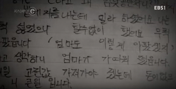 또한 그는 “창문을 열자 어둠 속에서 바람에 불려 몇 그루 미루나무가 거대한 빵처럼 부풀어오르는 게 보였다.”(p.88)고 하며 무서움을 느낀다. 하지만 그에게 정말 무서운 건 가난한 아버지와 위태로운 어머니이다. 이를 과장되지 않은 담담한 어조로 표현함으로써 안타까움을 자아낸다.