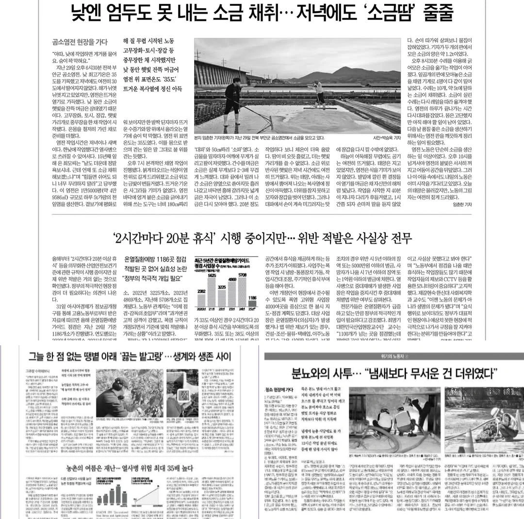 #위기의노동자 #기획기사 #기후위기 #폭염 #온열질환자 #노동 #산재 #공사장 #배달 #물류센터 #정화조 #농촌 #염전 #임춘한기자