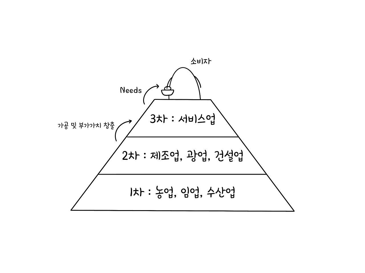 한 사회나 국가경제에서 서비스업이 성립되려면 근본적으로 1차 산업과 2차 산업의 발전이 기반이 되어야 합니다. 1차 산업은 원재료를 채집 및 수확하는 산업들로, 농업, 임업, 수산업 등이 이에 속합니다. 2차 산업은 1차 산업의 생산품이나 천연자원을 가공하여 부가가치를 만들어 내는 산업으로, 제조업, 광업, 건설업 등이 이에 속합니다.