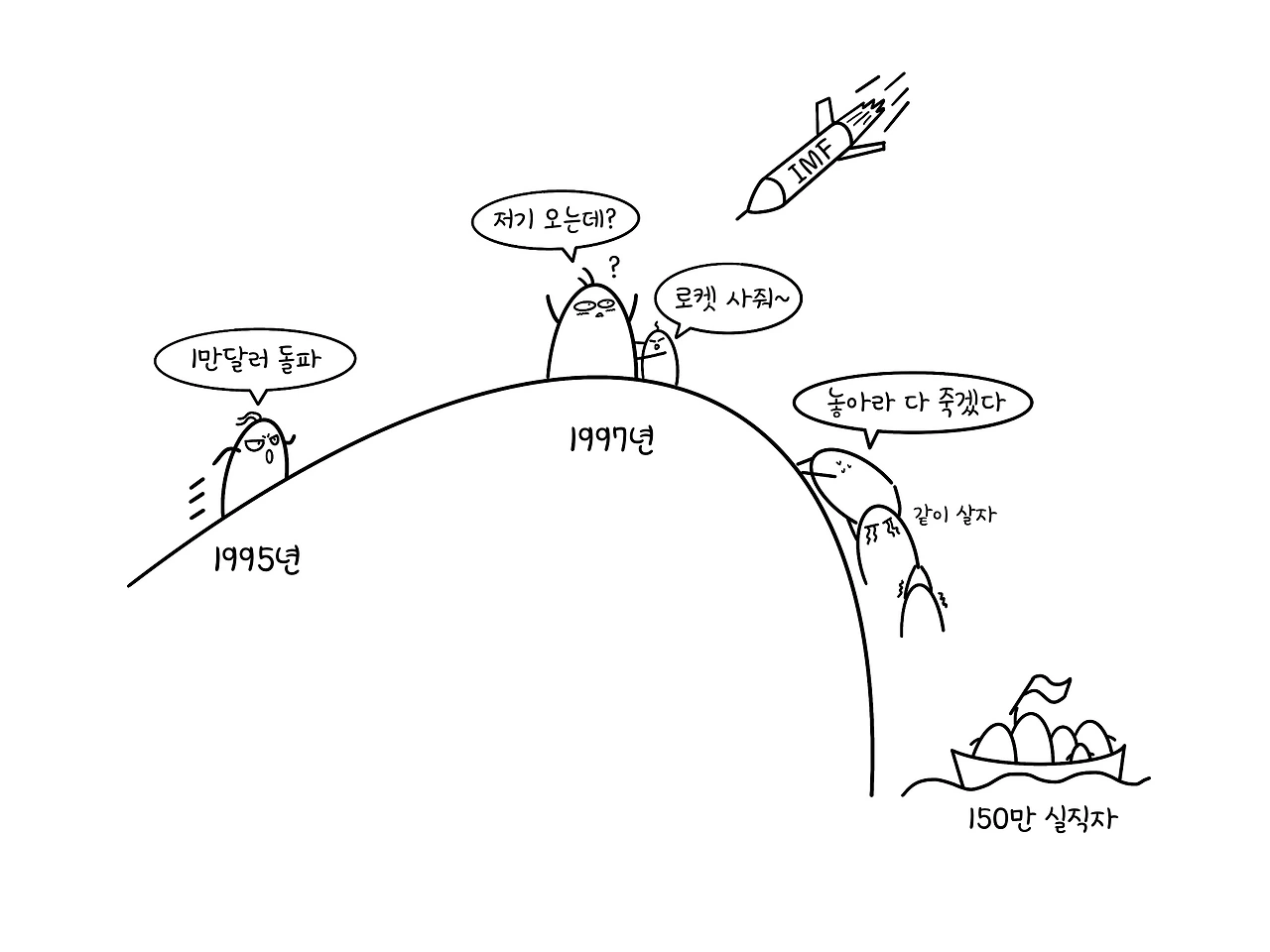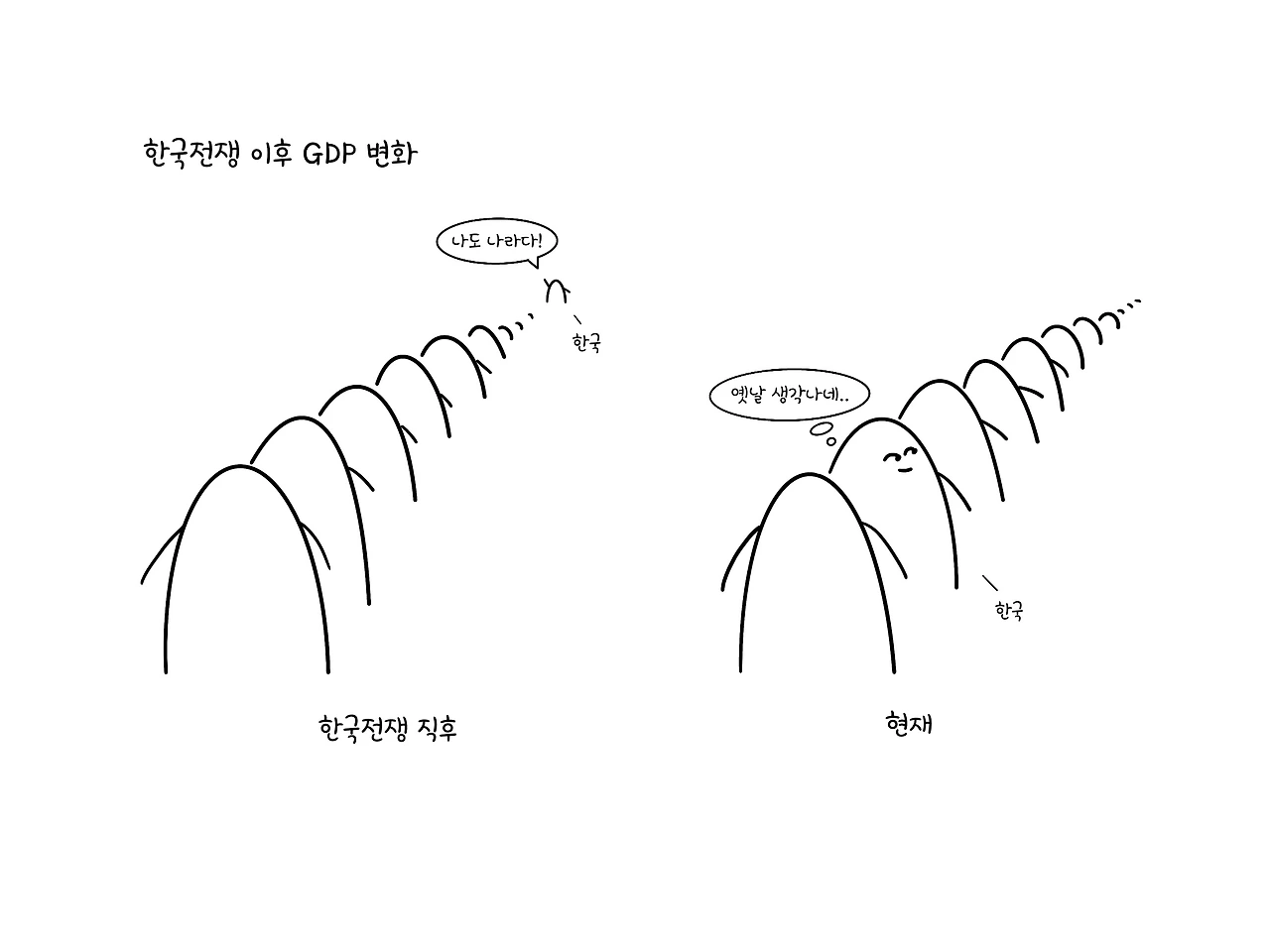 한국 사회는 전후 세계에서 가장 가난한 나라에서 지금의 놀라운 경제성장을 이루어내는 과정에서 사회 구성원들에게 '열심히'라는 표현으로 동기 부여를 하면서 '잘 살아 보자'라는 목표를 부여해 왔습니다. 기업 관점에서 바꾸어 말하면 열심히 근면성실하게 노력하여 '현재 시장에서 잘 팔리는 제품과 서비스'에 집중하였습니다. 한 사회의 경제 발전과 기업의 성장에 있어서 '열심히', '잘 살아 보자', '팔리는 제품과 서비스'라는 대명제에 반박이나 질문이 있기 어렵습니다. 그만큼 중요하고 가치가 있는 대명제임을 부정할 수 없습니다. 그러나 이러한 대명제는 곧 또 다른 기업의 '더 열심히'와 또 다른 '더 잘 사는 모습'과 또 다른 '더 잘 팔리는 제품과 서비스'와 경쟁하게 됩니다.