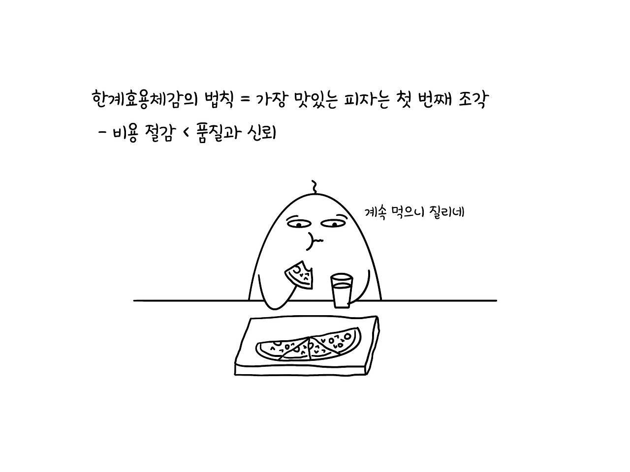 경제학의 '한계효용체감의 법칙'을 예로 들어 설명해 보겠습니다. 우리가 배고플 때 첫 번째 피자 조각은 큰 만족감을 줍니다. 하지만 계속해서 피자를 먹을수록, 각 조각에서 얻는 만족감은 줄어들게 됩니다. BPO기업과의 아웃소싱 관계에서도 초기에는 비용 절감이 큰 만족을 주지만, 시간이 지나면 품질과 신뢰가 더 중요한 요소로 떠오르게 됩니다. 그다음으로는 지속적으로 협력할 수 있는 관계와 더 높은 신뢰를 요구하게 됩니다. 이러한 변화는 시장의 성숙과 경쟁이 심해지면서 기업들이 비용 절감 이상의 가치를 찾기 시작했음을 의미합니다.