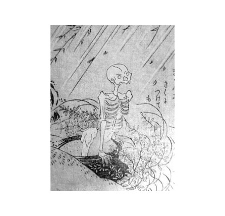 <책 표지 안쪽에 실린 '광골'의 그림. 우물 속에서 나타나는 해골 요괴인데도 공포스럽다거나 악의에 가득 찬 느낌이라기보다는, 어딘가 나사 하나가 빠져 있는 것처럼 멍해보이는 게 좀 우스꽝스럽다>