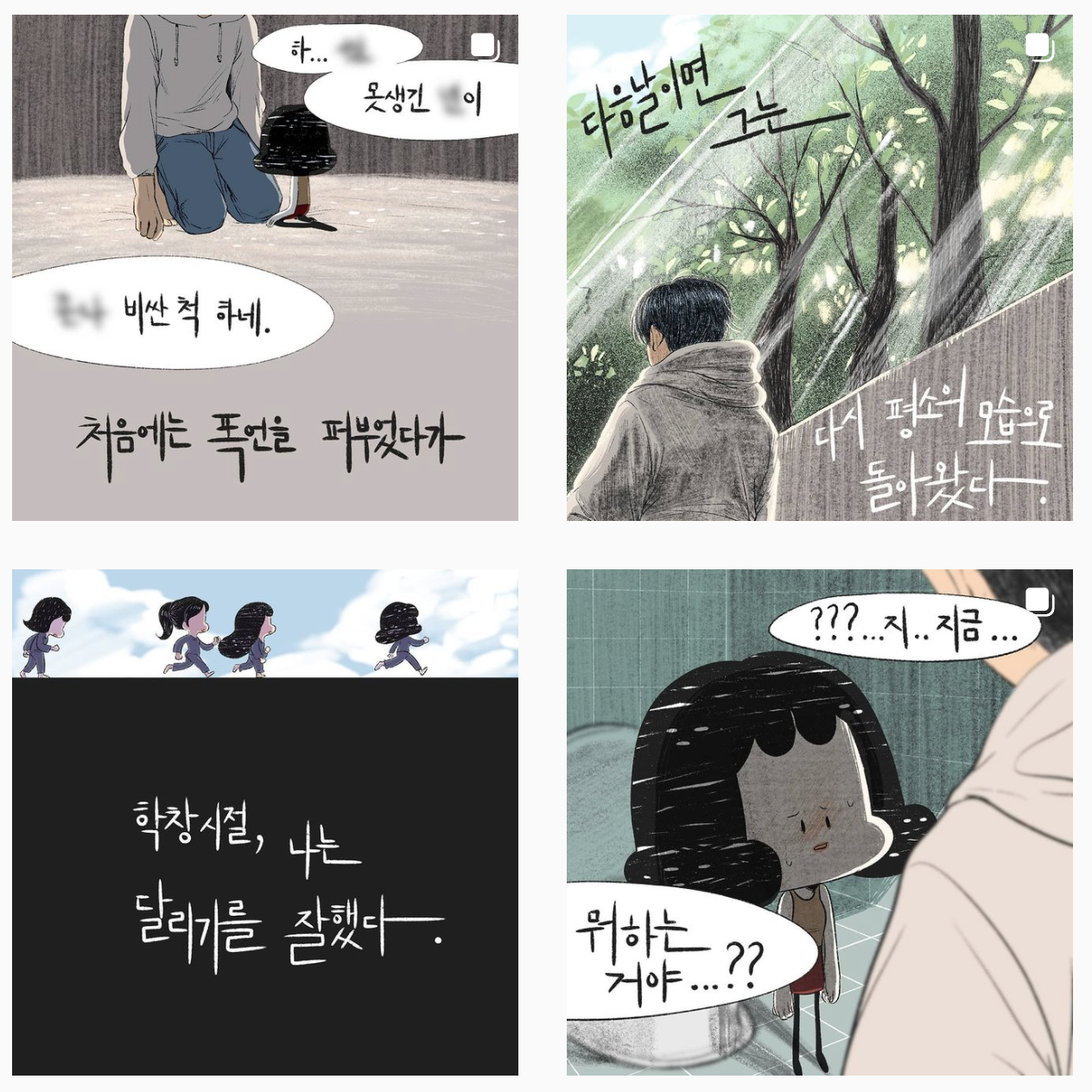 어느 날 나는 데이트 폭력에 관한 인스타툰(인스타그램에 업로드하는 짧은 웹툰 형태)를 보게 되었다. 작가는 데이트 폭력에 대한 글을 연재하고 있었다. 현재의 나와 굉장히 심리 상태가 유사했다.