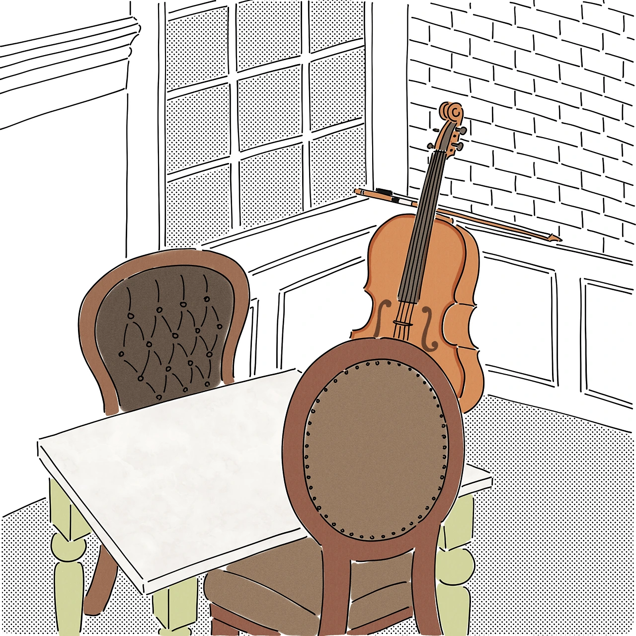 멋진 그림들, 다양한 악기들로 장식되어 있어 호사스러운 기분을 들게 했다.