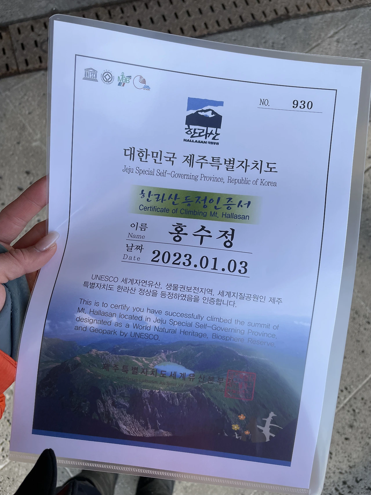 23년 1월 3일, 혼자 떠난 1박 2일 제주 여행에서 한라산에 올랐다. 아직도 그날의 기억은 엊그제 일처럼 선명하다.