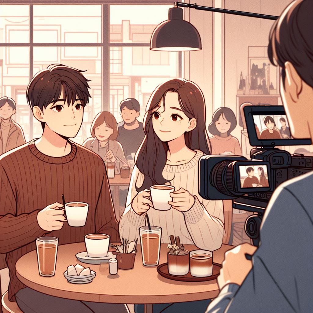 그리고 카페에서 차 마시는 쵤영도 종종 했다. 모르는 사람이랑 앉아서 이야기하는 척 연기했다. 물론 말하는 모습만 흉내를 내고 절대로 소리를 내면 안 된다. 촬영 때 동시녹음인 경우가 대부분이라 주연 배우들의 목소리만 녹음이 되어야 하기 때문이다.