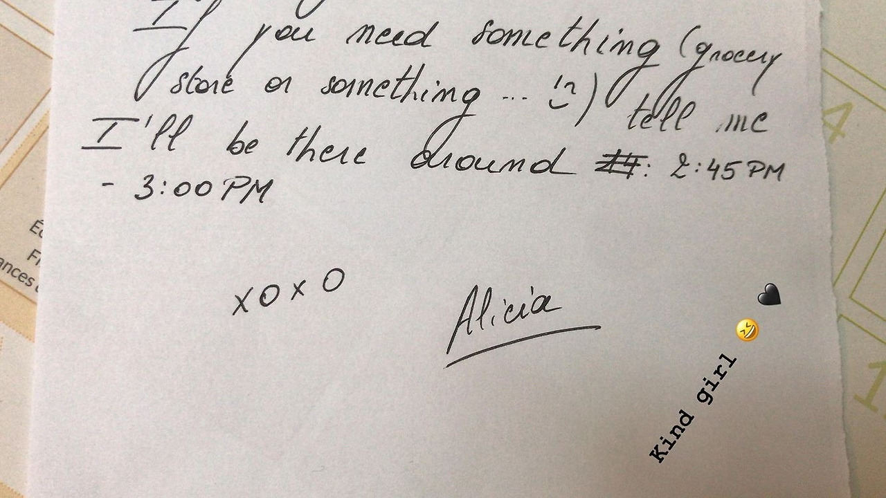 긴장이 풀려버린 나는 방으로 들어가서 가족에게 잘 도착했다는 인사를 남기고는 그대로 잠이 들어버렸다. 잠에서 깨어서 어슬렁거리다가 방문 밑에 있던 초콜릿과 메모를 발견했다. 함께 사는 친구 '엘리샤'가 주고 간 것이다. 너무 스윗했다... 타지인을 위해 함께 식료품점에 가 주겠다고 먼저 말하고, 자기가 가능한 시간까지 말해 주는 스윗걸이라니. 엘리샤는 사랑이 많고, 배울 점도 정말 많은 친구였다.