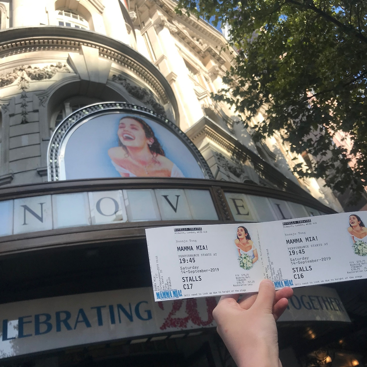 배를 채운 후, 우리는 뮤지컬 티켓을 사기 위해 맘마미아 공연장 앞으로 갔다. '데이 시트'라고 뮤지컬 당일 오전에 줄을 서면 싼 가격에 좋은 자리 티켓을 구할 수 있는 제도가 있는데, 우리도 아침부터 길에서 기다린 덕분에 맘마미아 데이 시트를 구할 수 있었다.