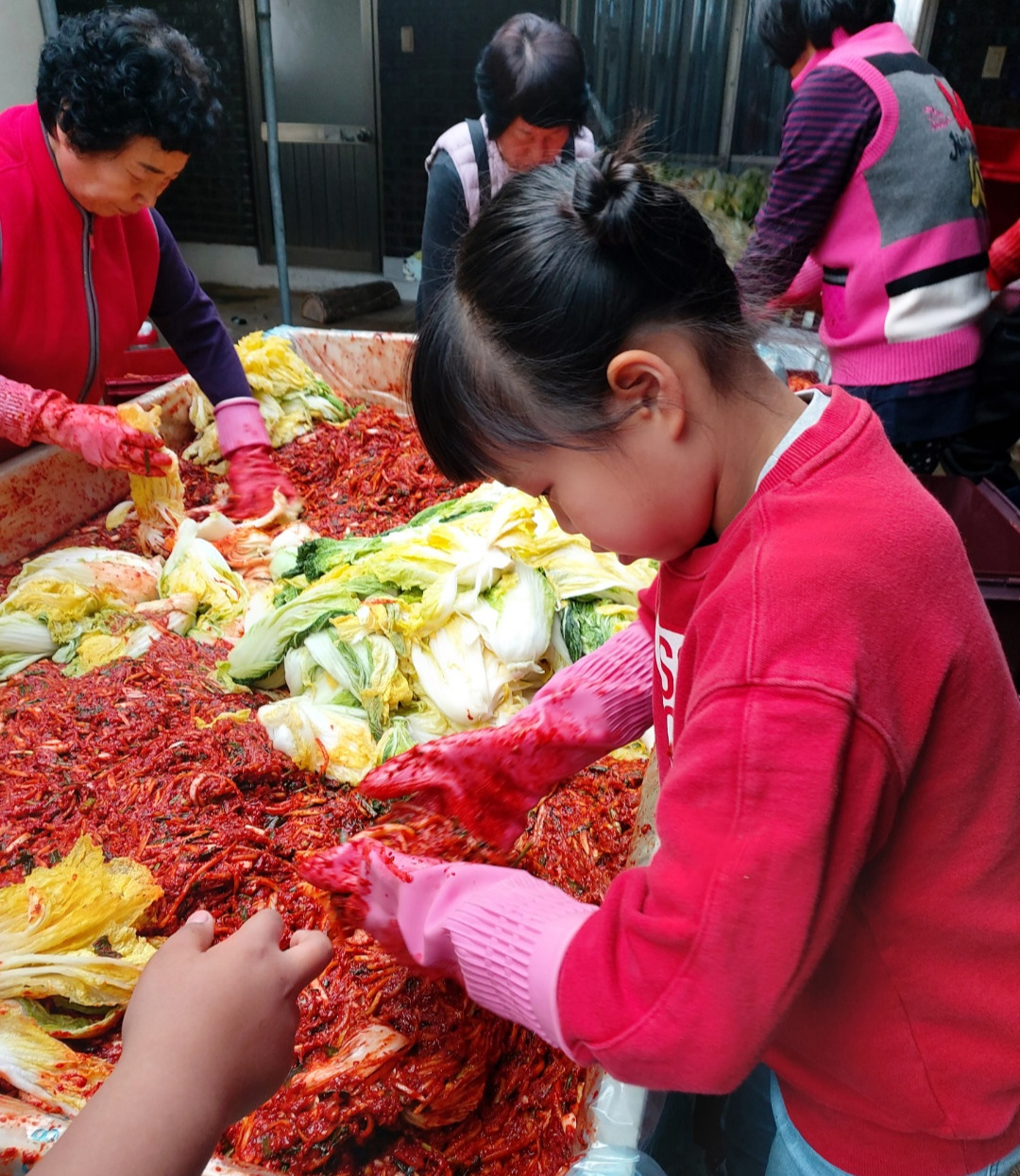 그동안은 개인전이었다면 이번엔 팀플레이다. 큰 이모네, 작은 이모네, 삼촌네 식구들 모두 모여 수백 포기의 배추 앞에서 알아서 척척, 호흡을 맞춘다.