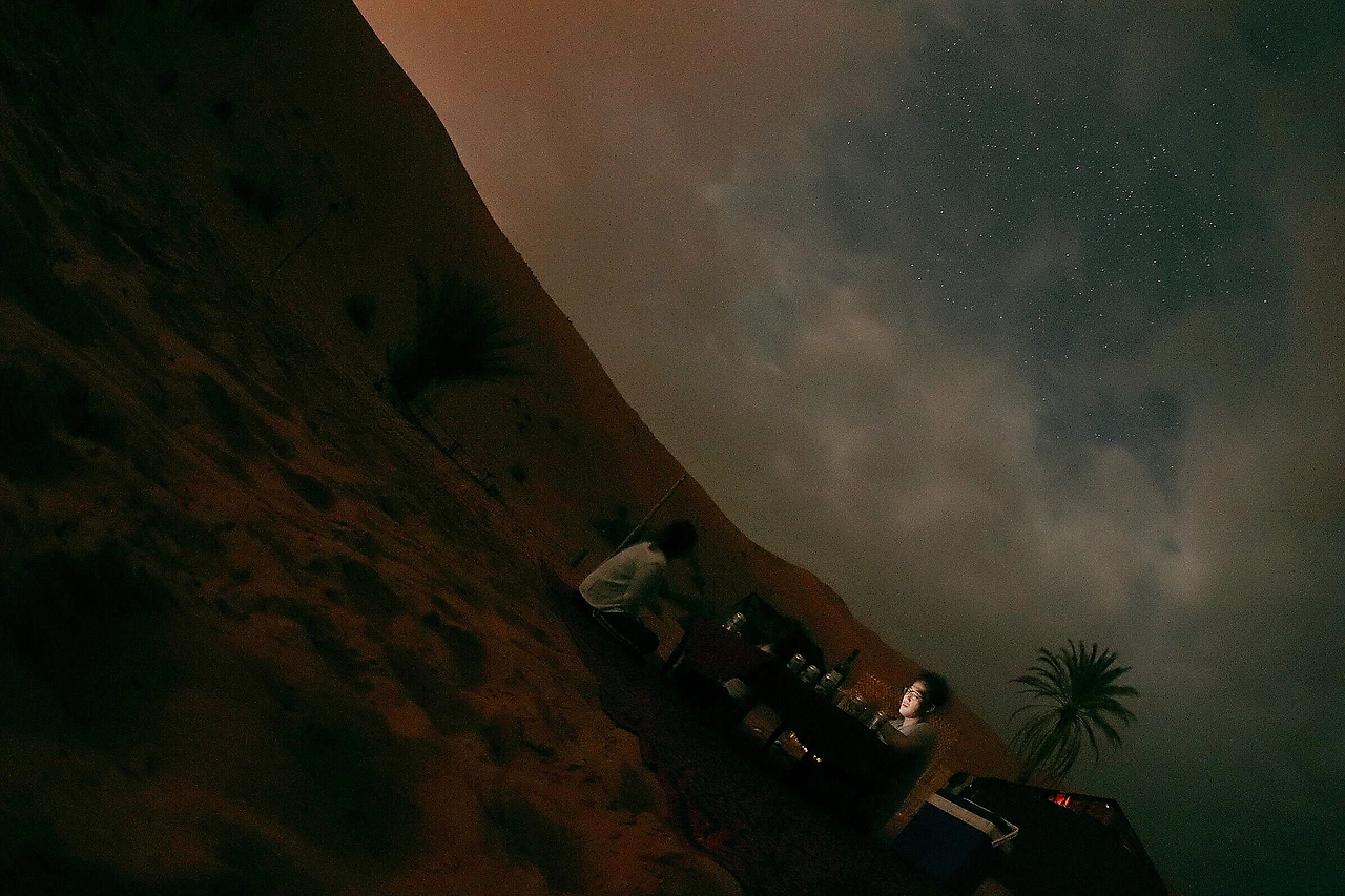 밤이 되었다. 어둠이 내린 검은 사막 위에는 드문드문 흘러가는 구름 사이로 밝은 보름달 하나 떠있었다. 그 달빛 아래 북아프리카 유목민 베르베르 족의 후예들의 융숭한 대접이 이어졌다. 모로코 전통음식 타진을 먹으며 그들이 들려주는 먼 옛날 선조들로부터 이어진 소리를 들었다. 주문이라도 외웠던 걸까. 그 노래의 리듬에 여행에 지쳐있던 몸이 깨어났고, 그들의 박자에 우리의 몸도 반응했다. 흔들린 몸에 깨어난 흥을 달래기 위해 누구 할 것 없이 서로가 고이 모셔온 술을 꺼냈다. 인생 단 하나의 접점에서 더 이상 이어지질 않을 인연의 삶에 축복 빌어주며, 모래 위 소소한 차림상 위로 술잔이 오갔다.
