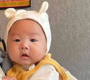 아기가 나를 향해 새처럼 바라보고 있다.