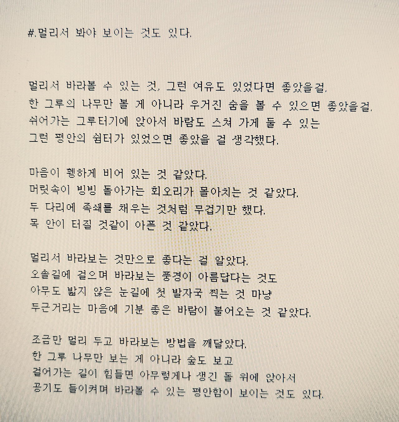 바로 앞에 보이는 글자만 보이듯자신만의 안정된 거리로 물러서야