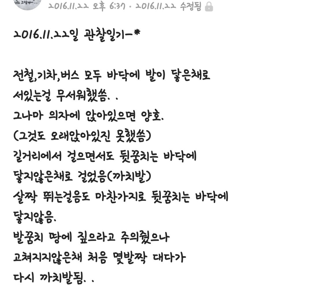 대학 전공 때도 하지 않았던 관찰 일기를 썼다.