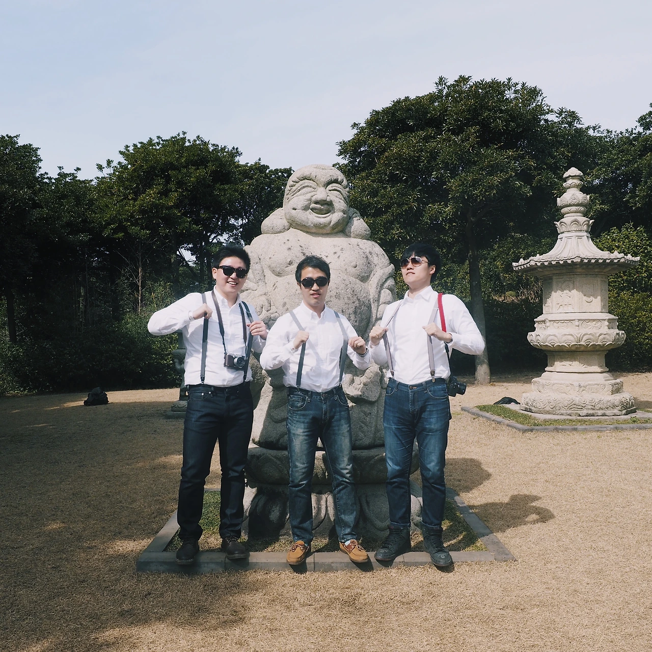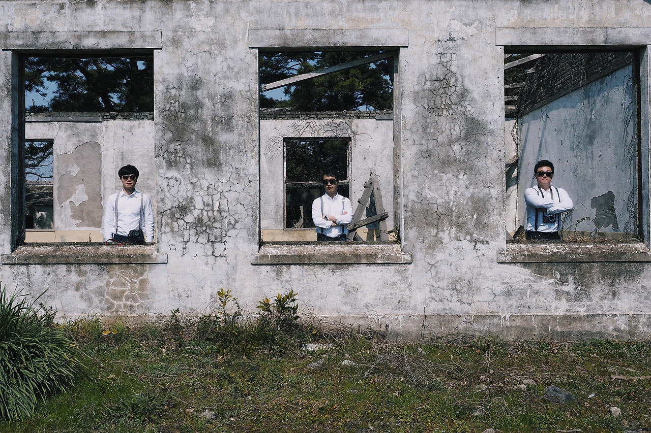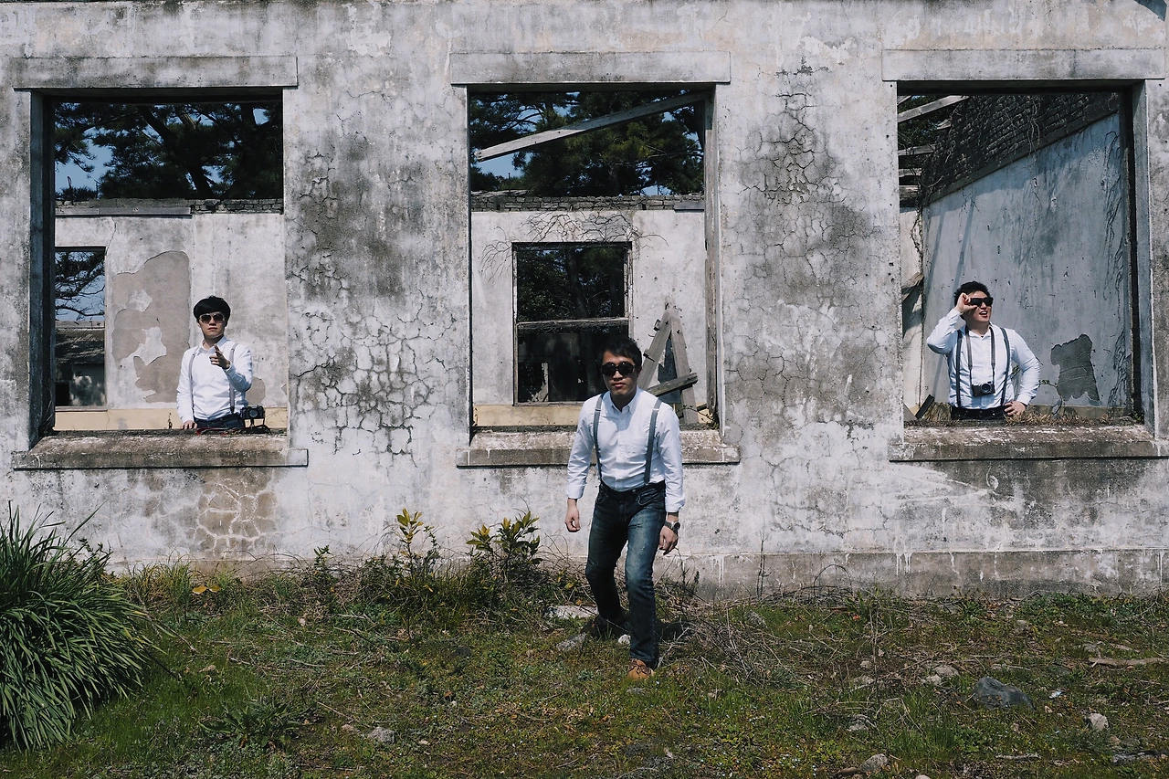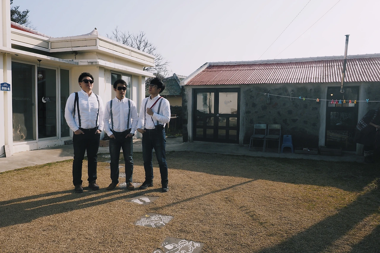 하얀 셔츠와 멜빵, 청바지를 콘셉트로 하고, 우리를 얽매고 있는 짐을 잠시 내려두고 비행기에 올랐다. 누가 시키진 않았지만 알아서 역할 분배가 되었다. Y군은 총무를, O형님은 여행의 전반적인 계획과 결정을, 나는 촬영장소 물색과 사진촬영을 맡았다. 그렇게 제주도의 첫발을 내딛었다.