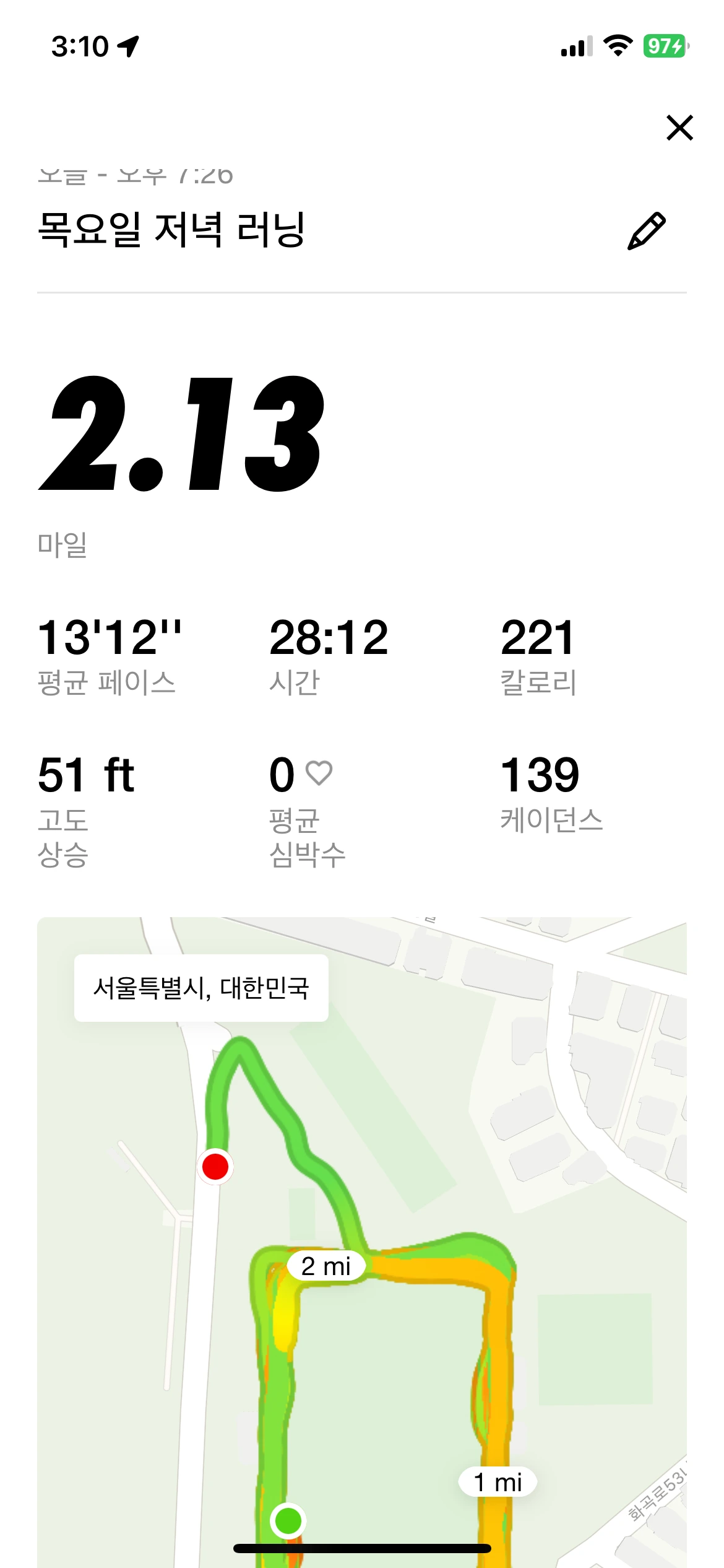 나이키 앱을 다시 설치하고 2마일을 뛰어보았다.
