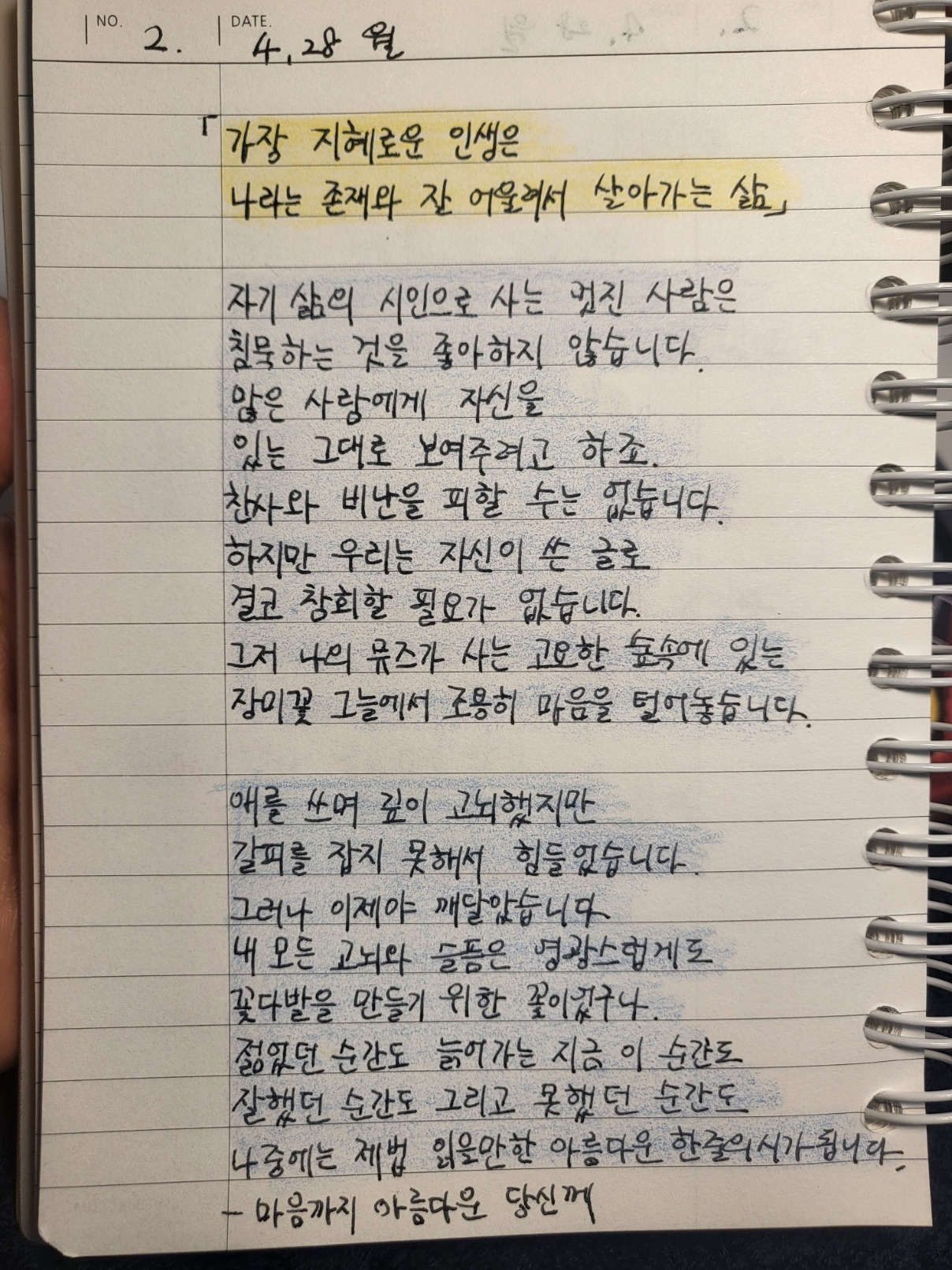 고귀한 매일이 모여 여러분의 삶이 아름다운 시가 될 테니까요