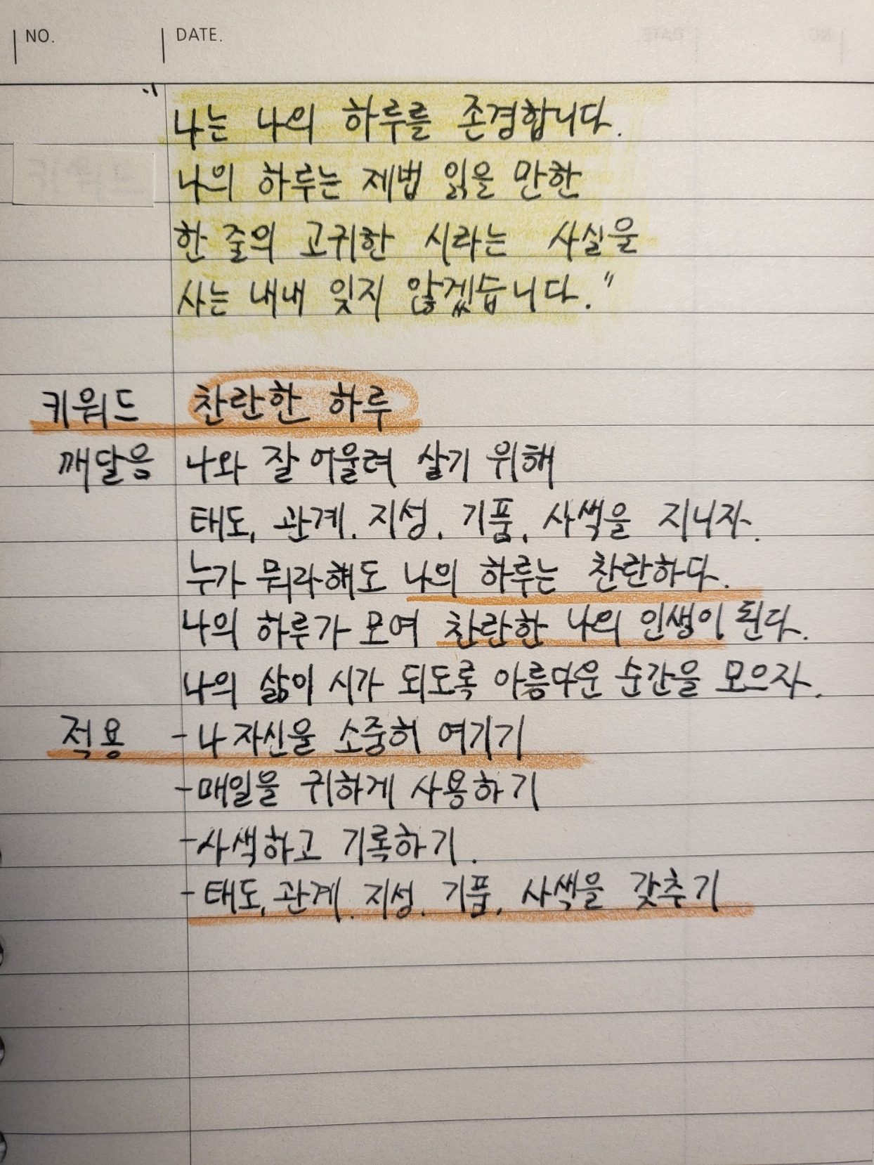 사는 내내 나의 하루가 소중하다는 것을 잊지 않겠습니다.