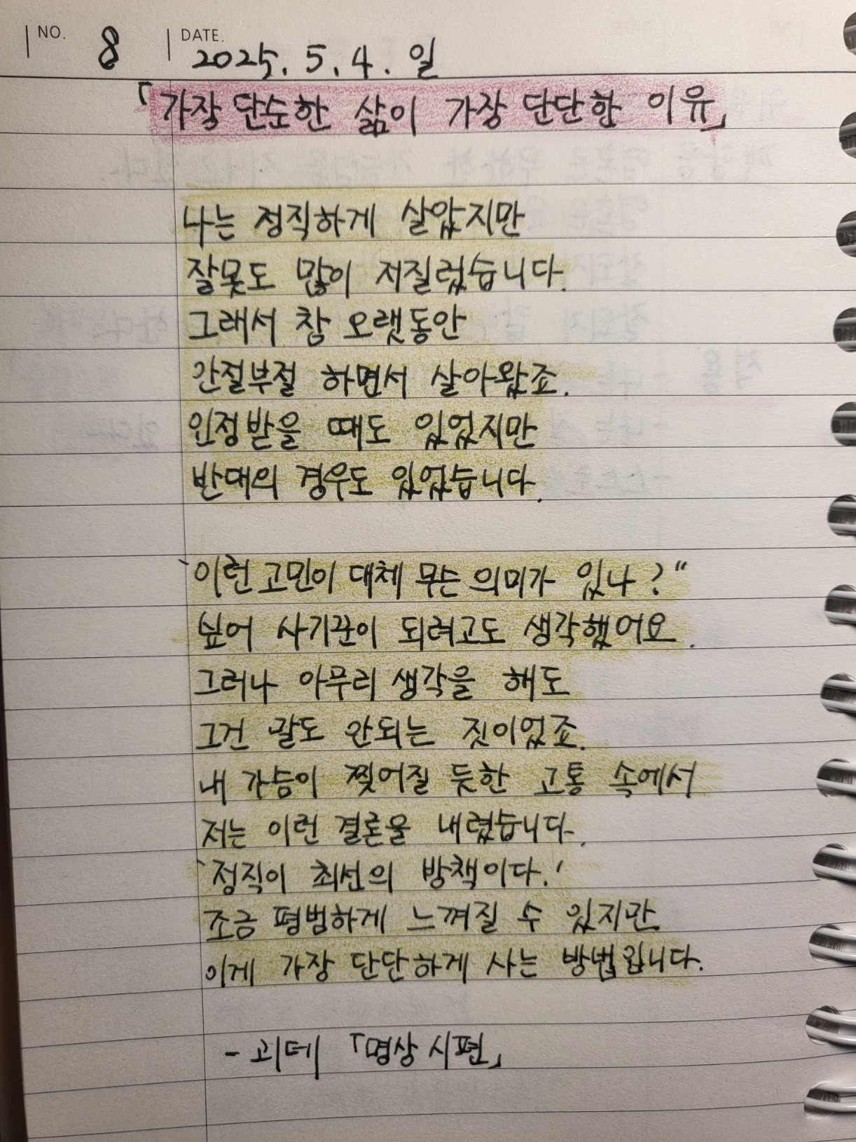 살아갈 날들을 위한 괴테의 시 /필사 #8