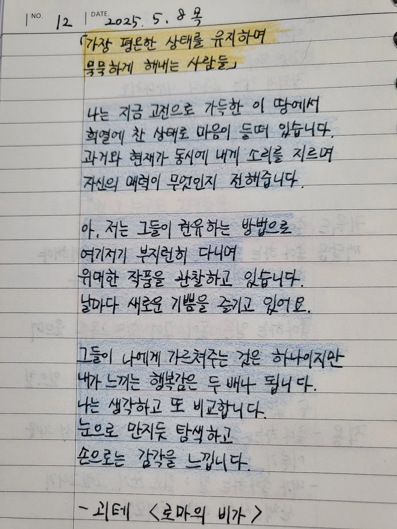 살아갈 날들을 위한 괴테의 시 / 필사 #12