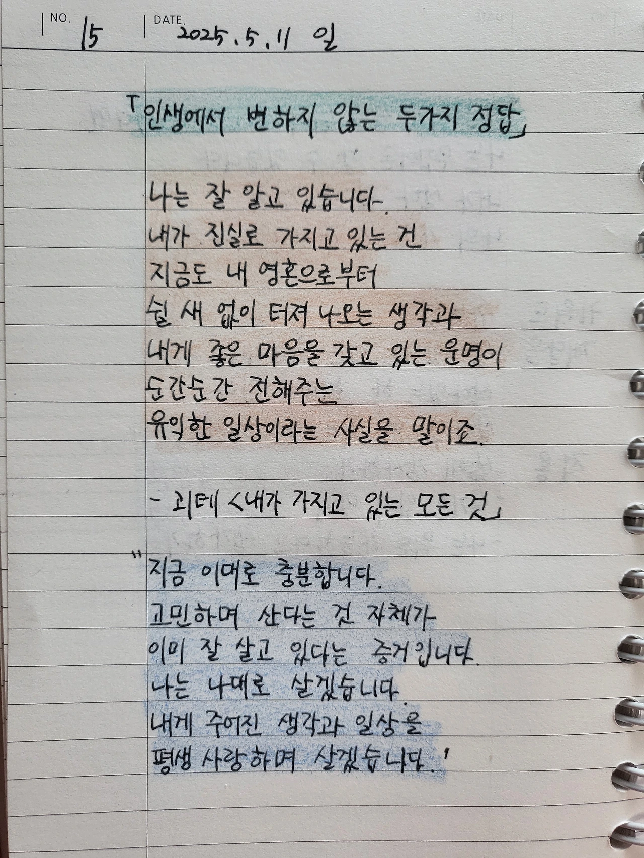 오늘의 필사는 제 마음에 깊은 위로를 안겨주었습니다. 저는 늘 마음속에 묻고 살았습니다. “이렇게 사는 게 맞을까?”
