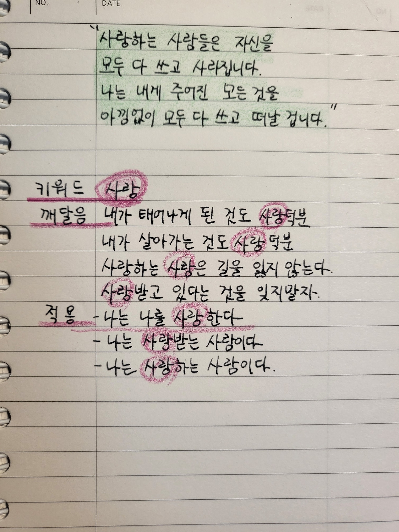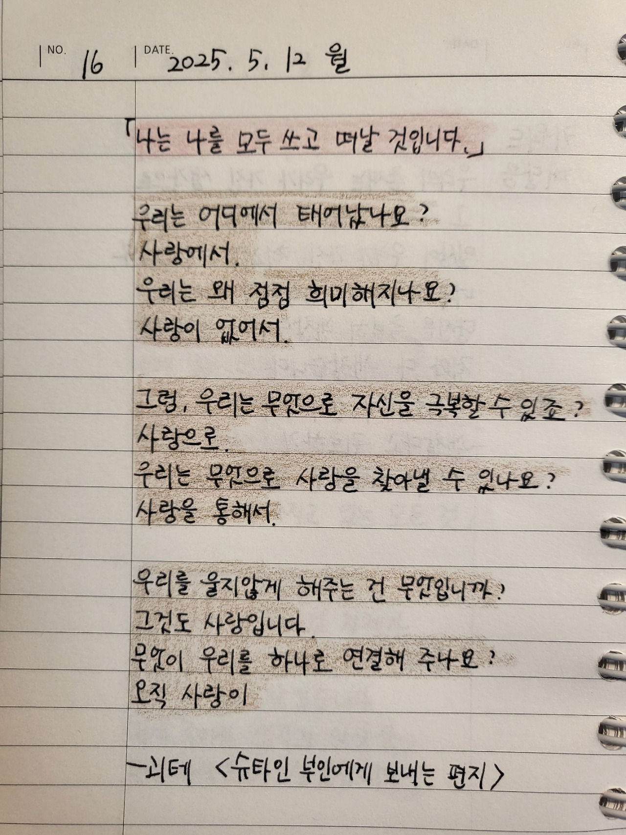 나 자신을 사랑하는 마음으로 묻고 답해보세요.
