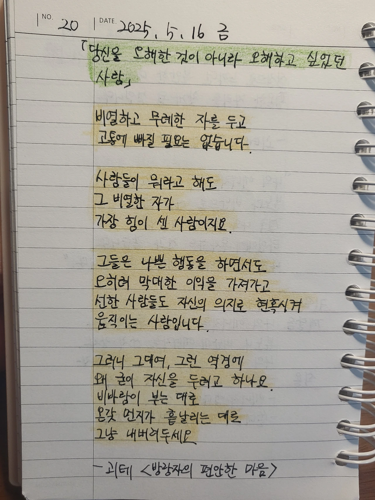 살아갈 날들을 위한 괴테의 시 / 필사 #20