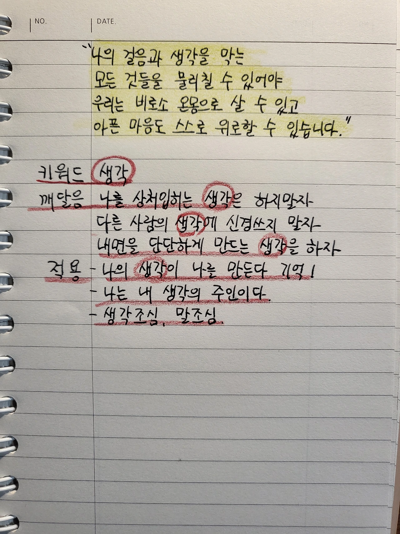 나는 내 생각의 주인입니다. 그러니 나의 내면을 단단하게 세우고, 나에게 희망을 심어주는 생각으로 나를 채워주세요.