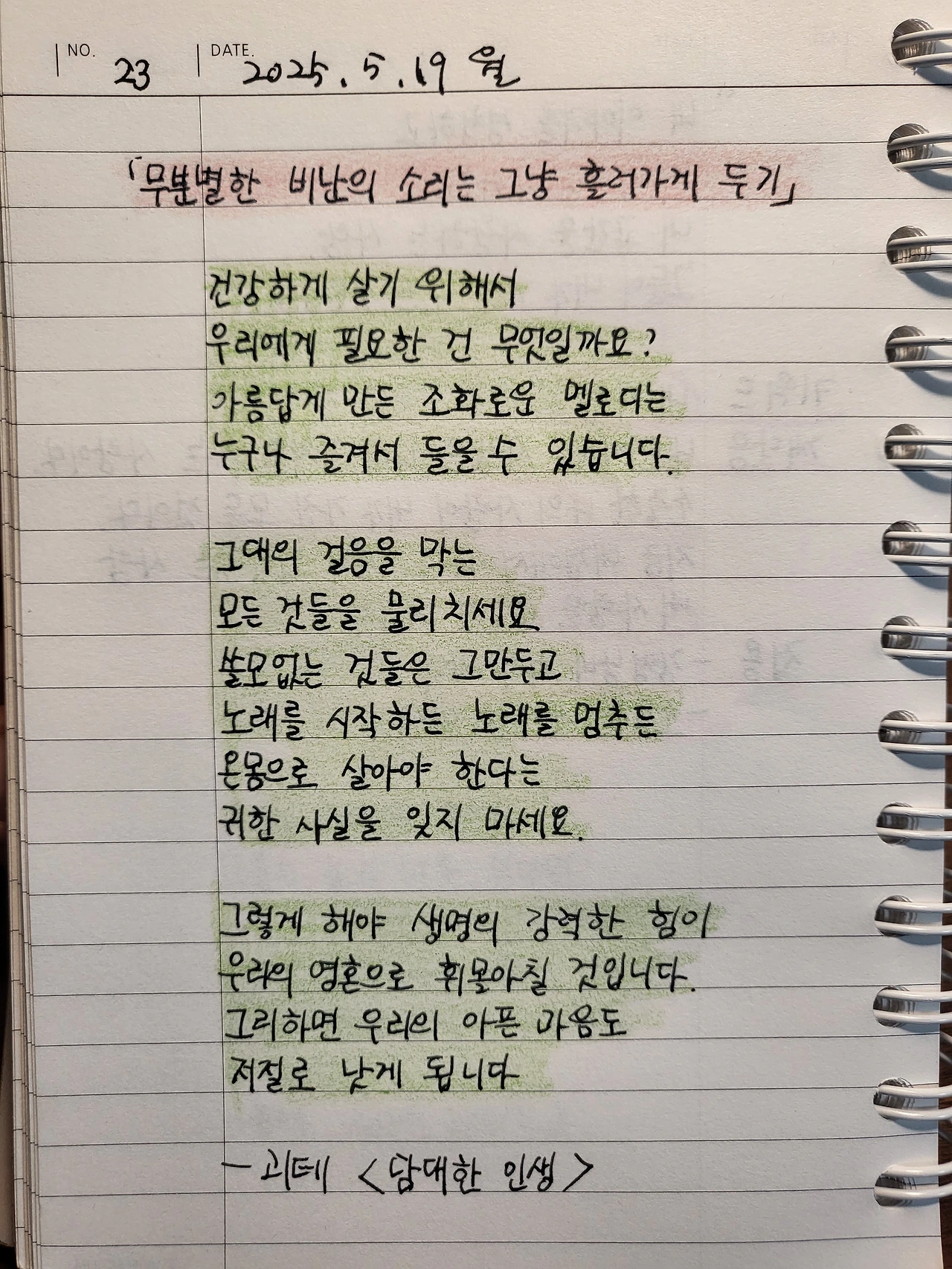 살아갈 날들을 위한 괴테의 시 /필사 #23