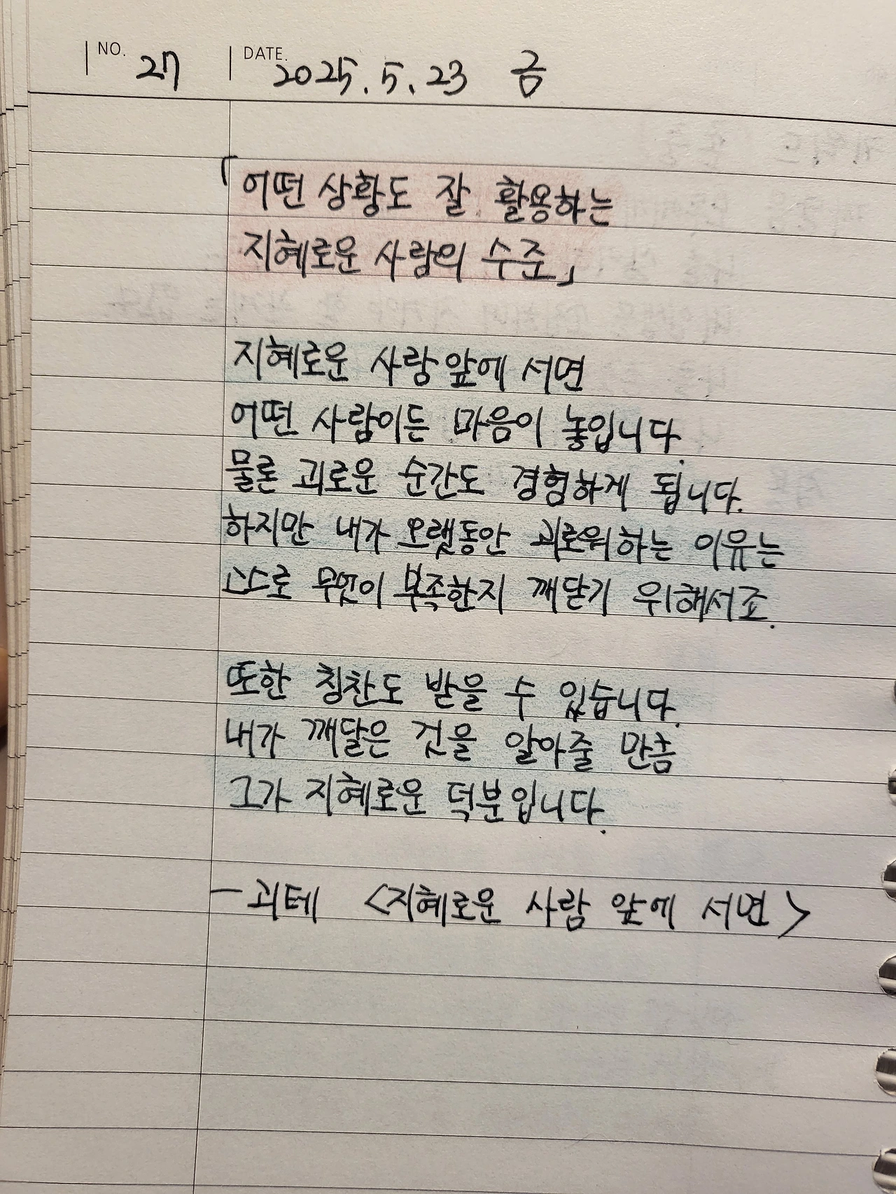 살아갈 날들을 위한 괴테의 시 /필사 #27