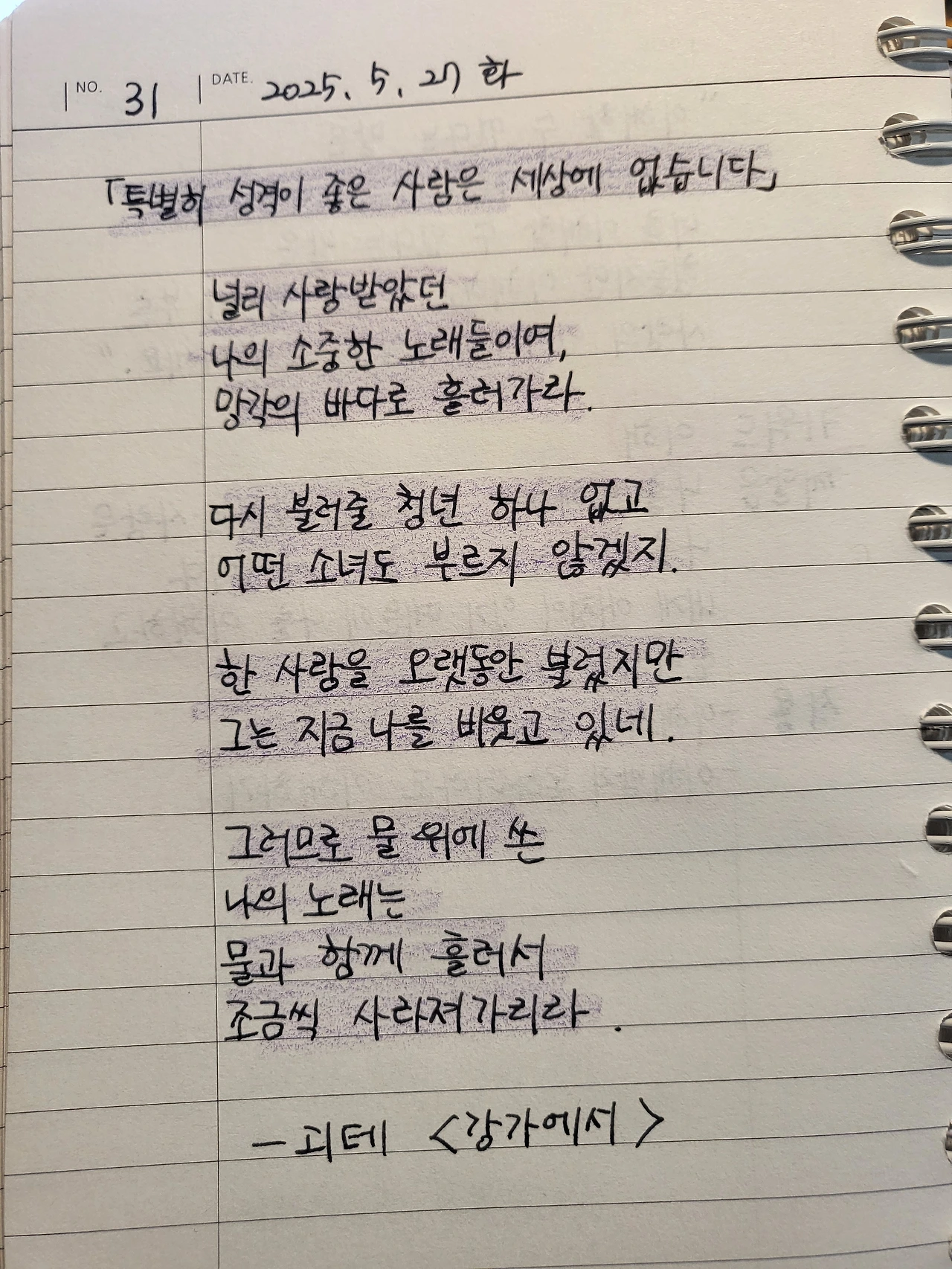 살아갈 날들을 위한 괴테의 시/ 필사 #31