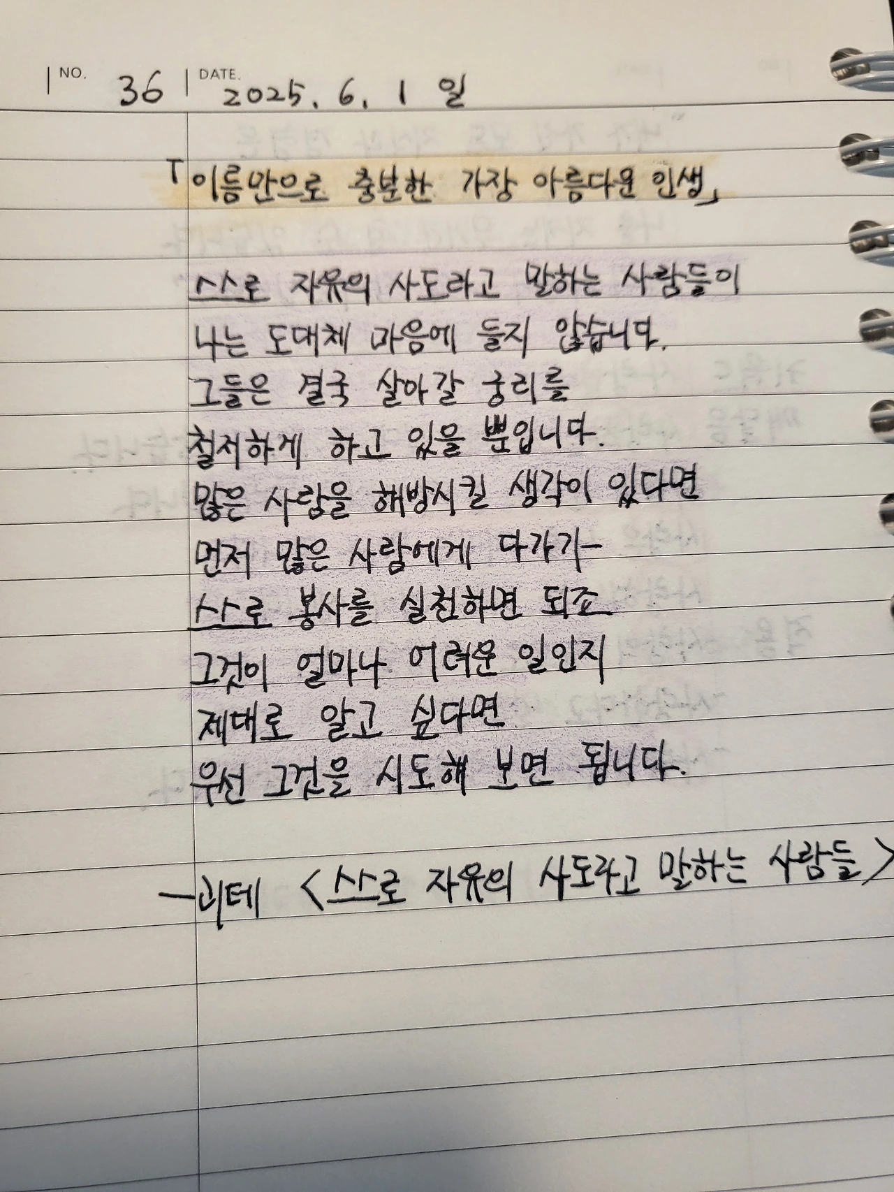 세상은 말보다 행동을 기억합니다. 빛은 스스로 빛난다고 말하지 않아도 그 존재만으로 어둠을 밝혀주니까요