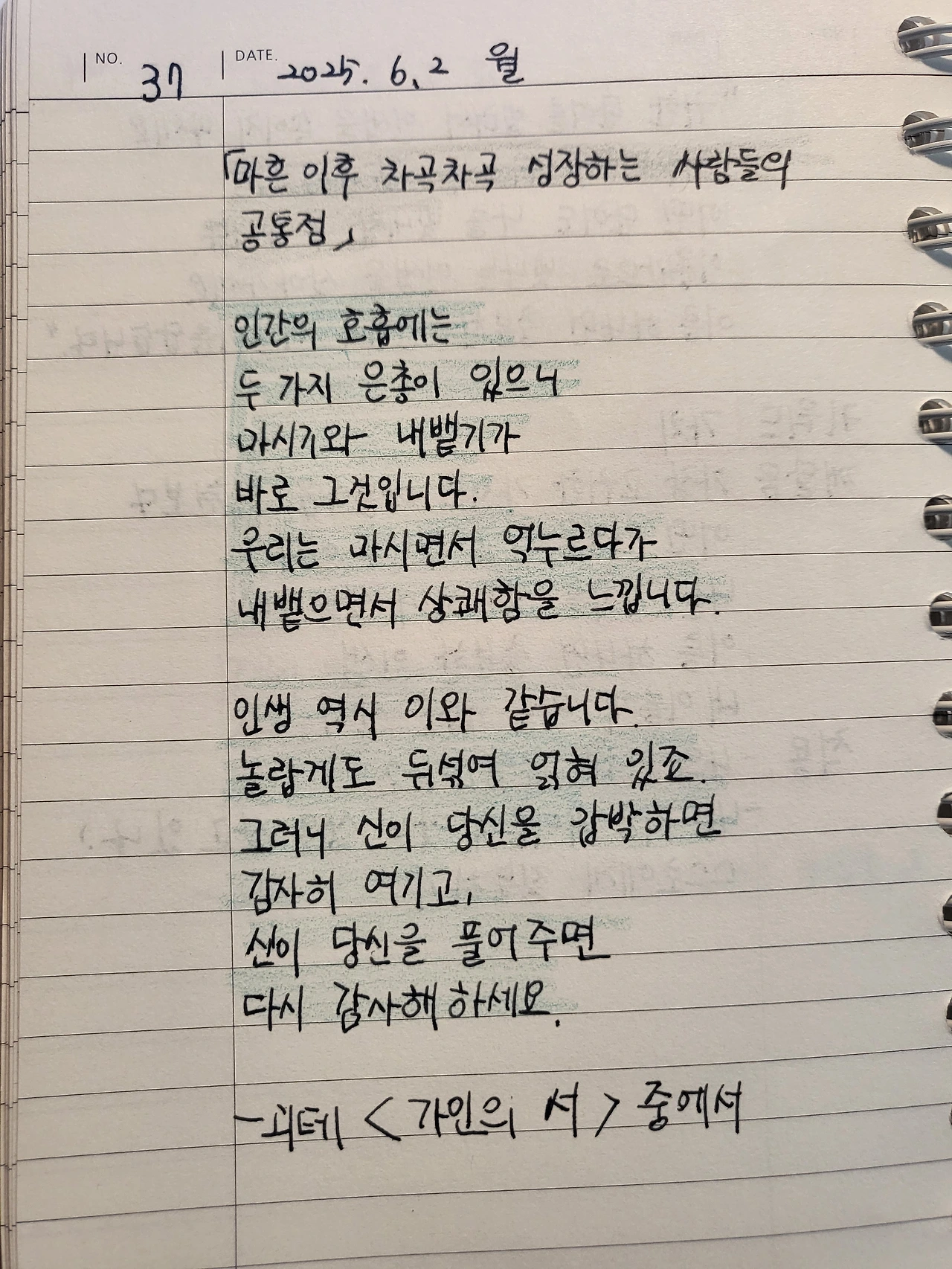 살아갈 날들을 위한 괴테의 시 / 필사 #37