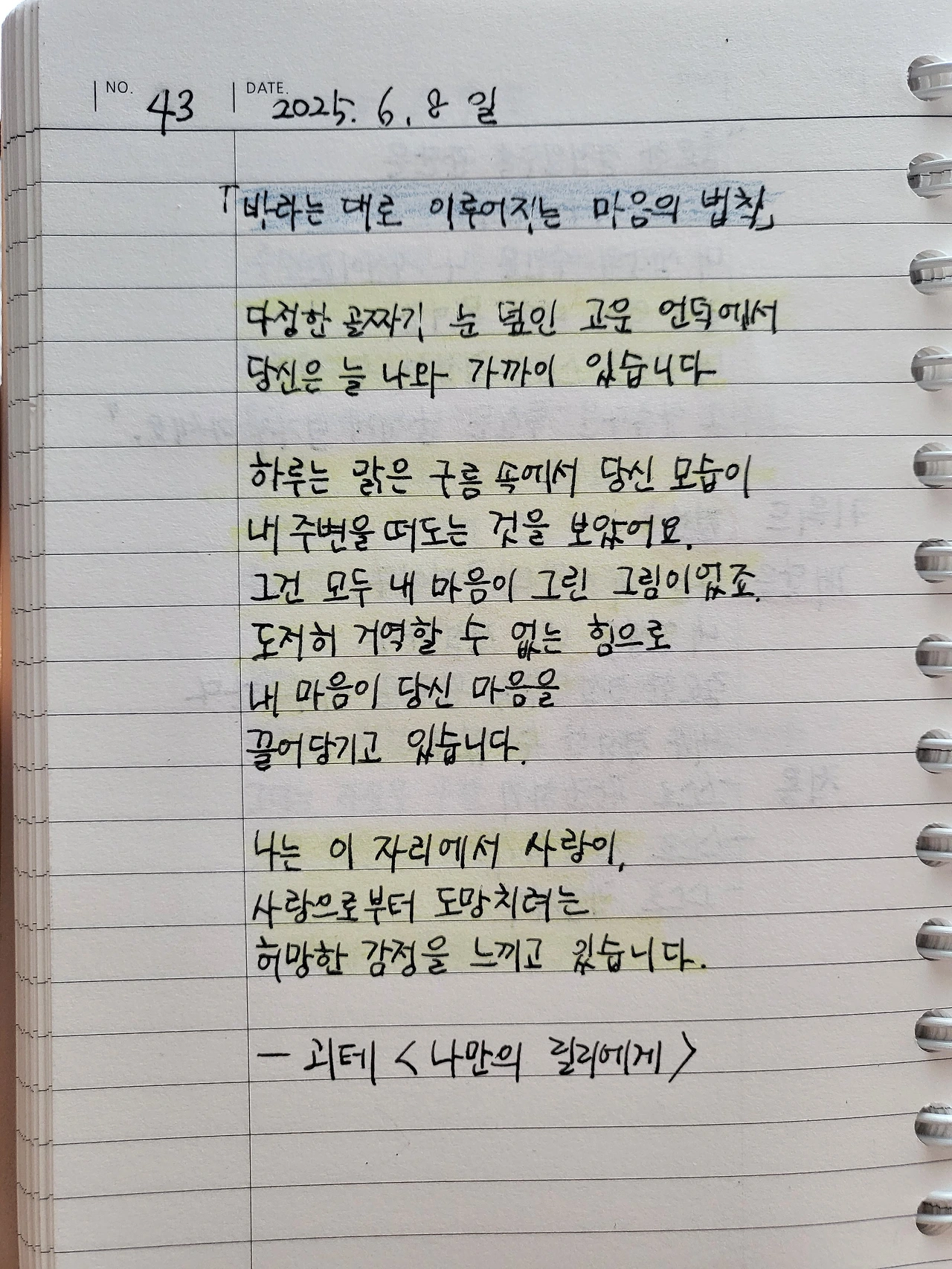 살아갈 날들을 위한 괴테의 시/ 필사 #43