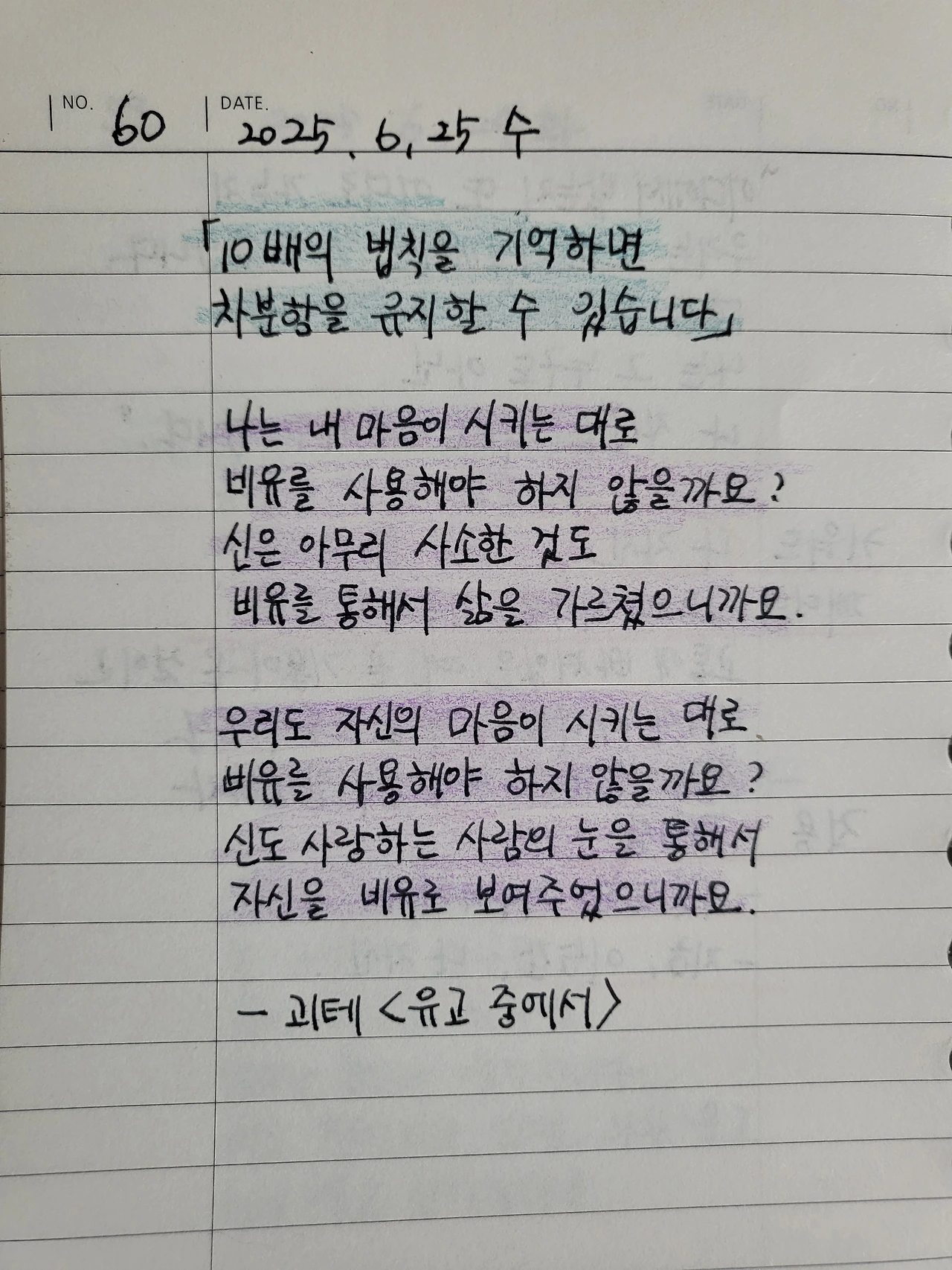살아갈 날들을 위한 괴테의 시 / 필사 #60