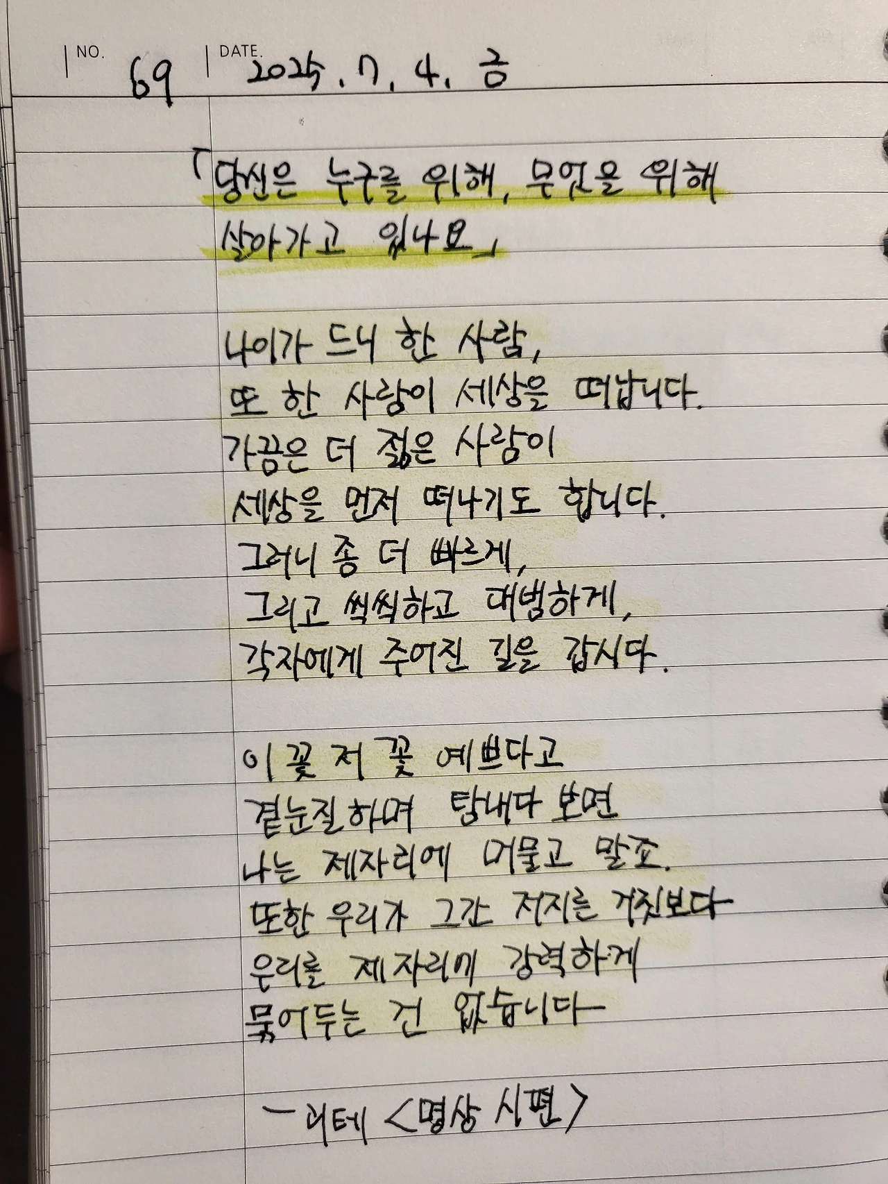 살아갈 날들을 위한 괴테의 시/ 필사 #69