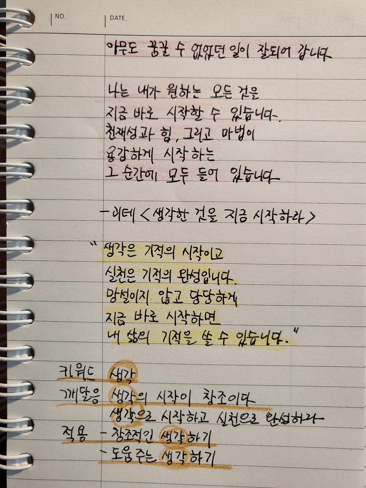 생각은 기적의 시작이고,