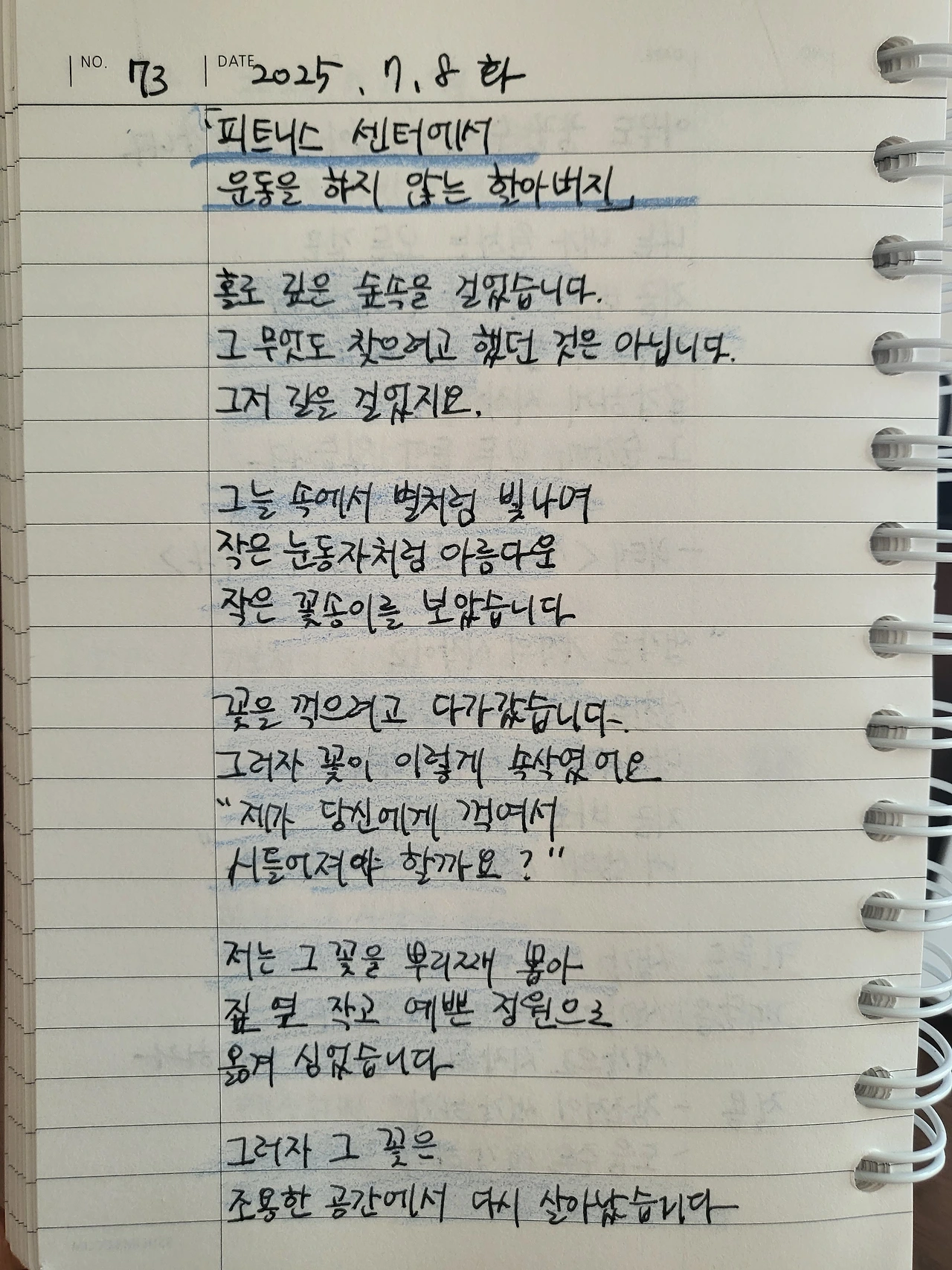 하지만 오랫동안 그 모습을 지켜보며 저는 알게 되었습니다. 누군가에게는 무게를 들어 올리는 것이 운동이라면, 그저 헬스장에 도착해서 옷을 갈아입고, 그 공간에 앉아 있는 것만으로도 충분한 운동이 될 수 있다는 것을요.