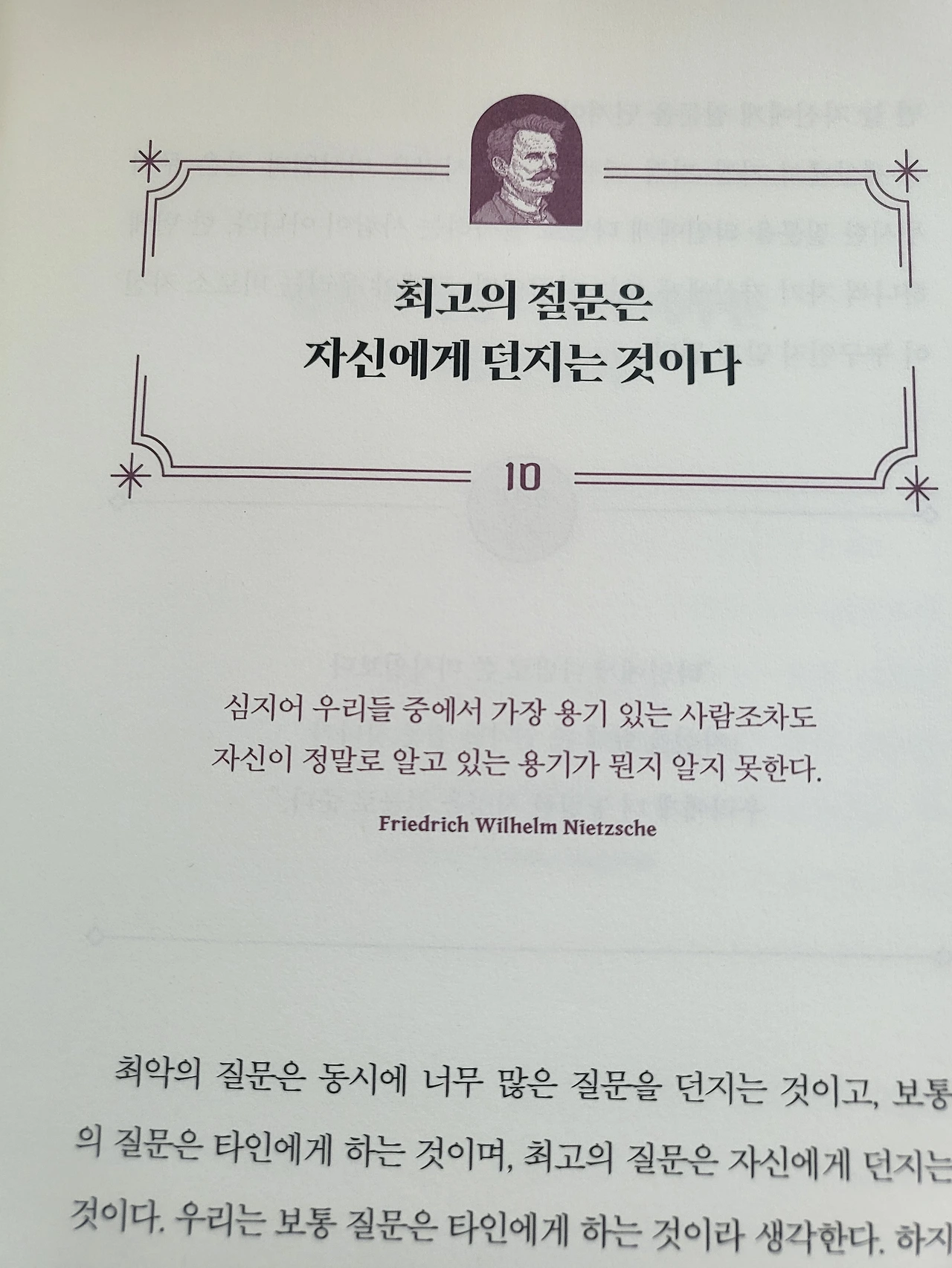 우리는 흔히 질문은 남에게 하는 것이라고 생각합니다. 삶의 중요한 해답은 놀랍게도 우리 내면에 있는 경우가 많습니다. 진짜 좋은 질문은, 결국 자신에게 던지는 질문이 되어야 합니다.