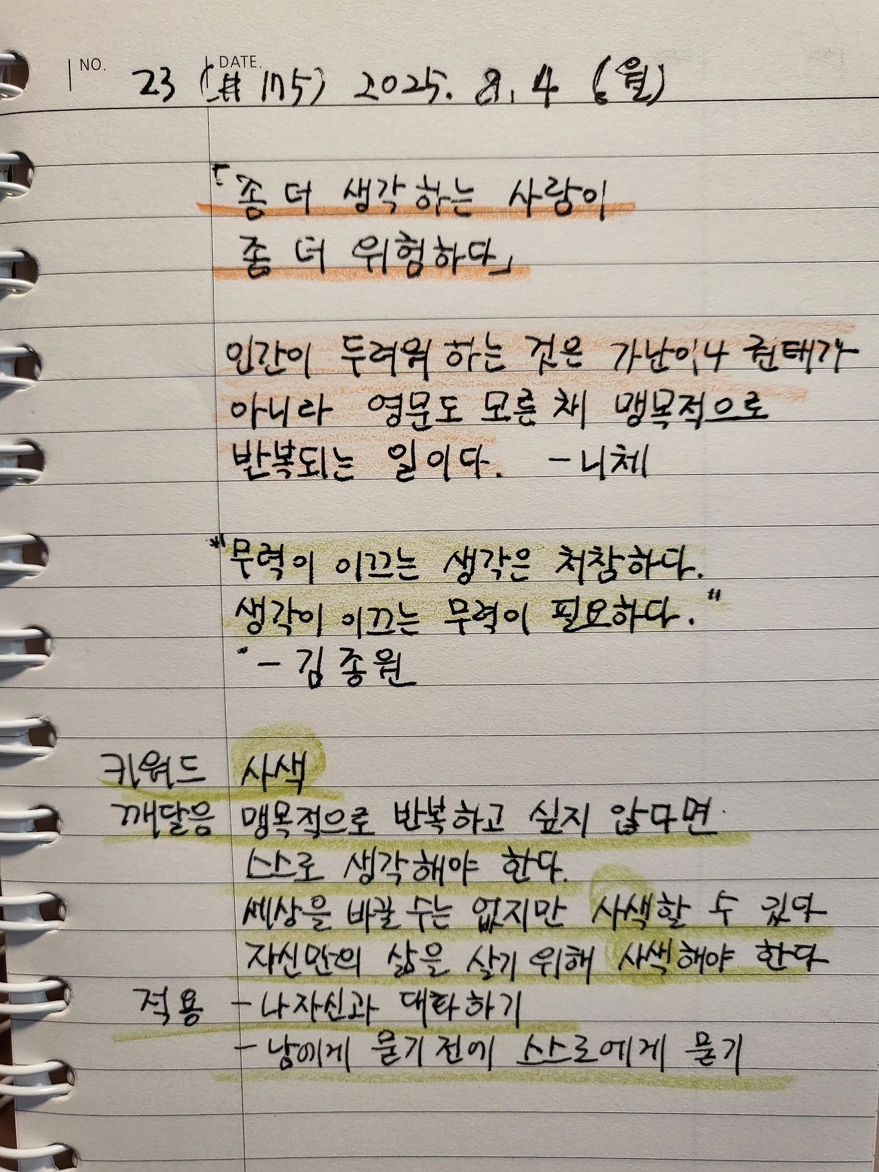 한 번 사는 인생, 어떻게 살아야 하는가 /필사 23(#175)