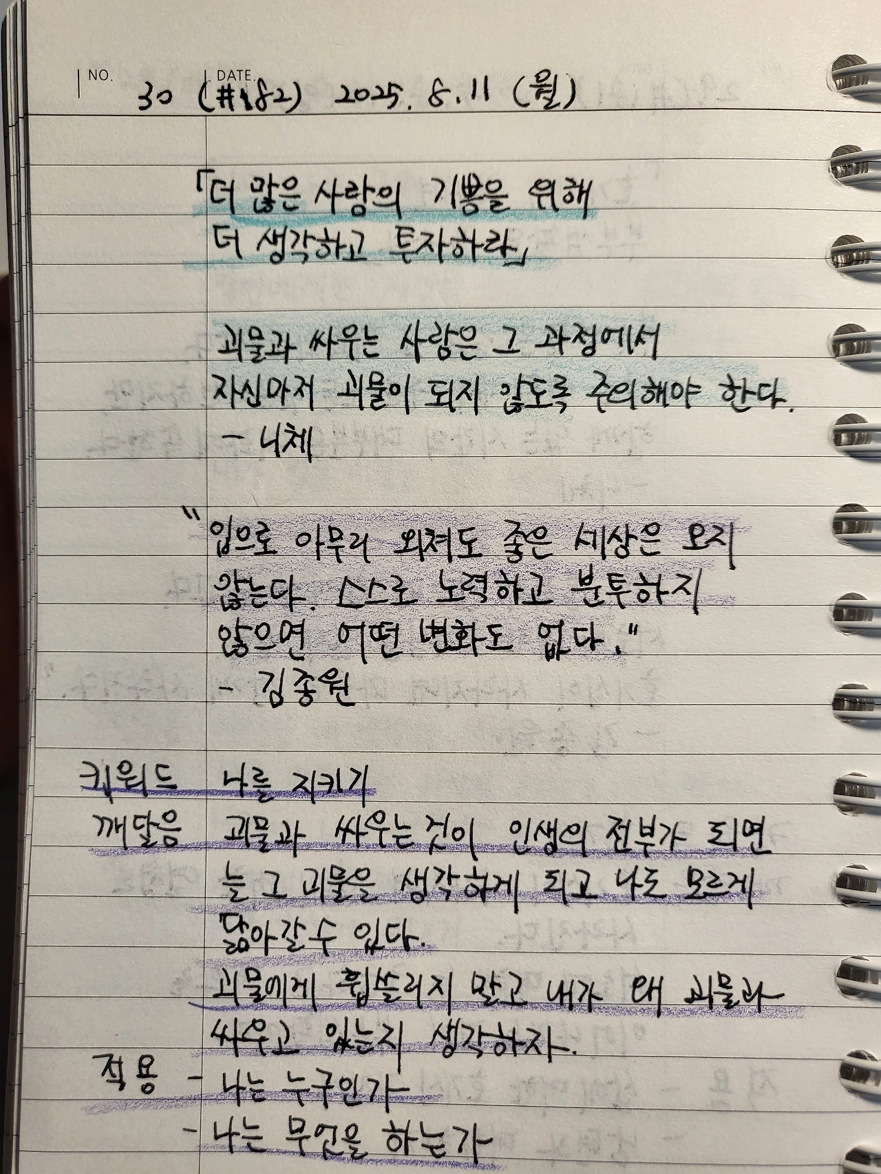 한 번 사는 인생, 어떻게 살아야 하는가 / 필사 30(#182)