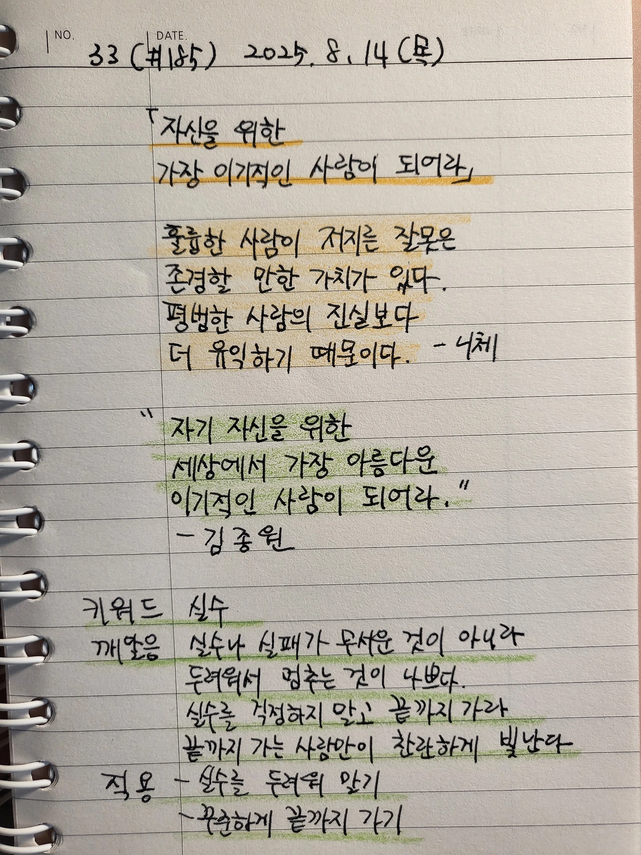 한 번 사는 인생, 어떻게 살아야 하는가 /필사 33(#185)