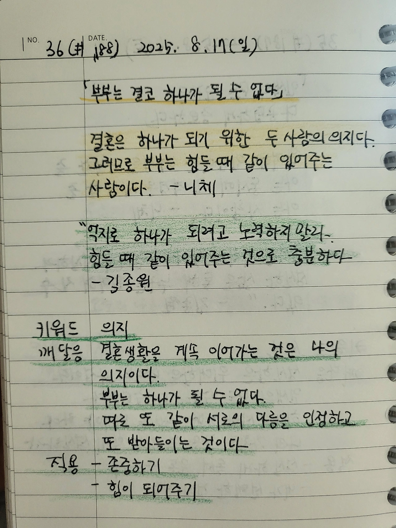 한 번 사는 인생, 어떻게 살아야 하는가/ 필사 36(#188)