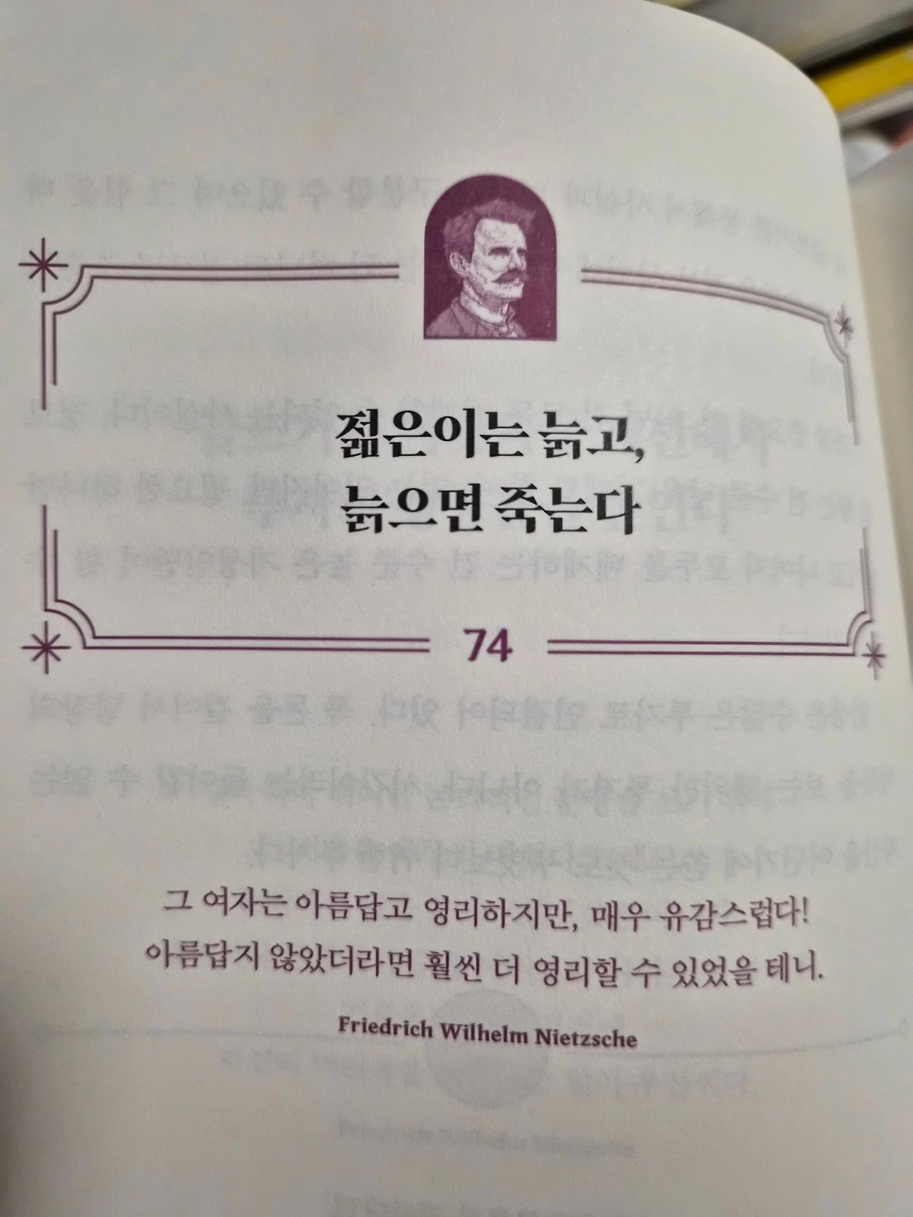 니체의 말은 단순히 미모와 지성의 관계를 말하는 것이 아닙니다. 여자는 아름답고 영리하며, 동시에 자신이 아름답다는 사실을 알고 있습니다. 외적인 아름다움에만 지나치게 집중한다면 지성을 채우는 데 쓸 에너지를 잃게 됩니다. 남들에게 어떻게 보이는가에 집착하는 순간, 내면을 가꾸는 일은 뒤로 밀리기 쉽습니다.