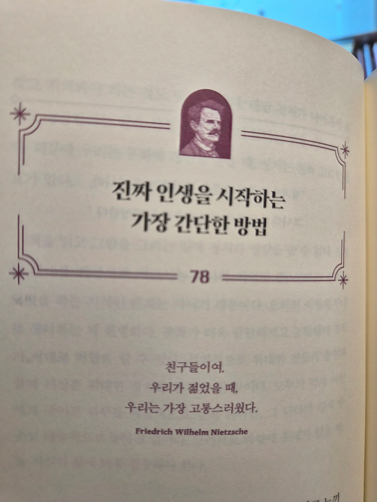 니체가 말한 젊음의 고통은 단순한 불행만은 아닙니다. 그것은 우리를 단련하는 불길이며, 삶을 진정으로 체험하게 만드는 통과의례입니다. 불안과 상처, 좌절 속에서 우리는 자신만의 길을 찾아갑니다. 지금의 방황과 실패는 언젠가 우리의 가장 값진 자산이 될 것입니다.